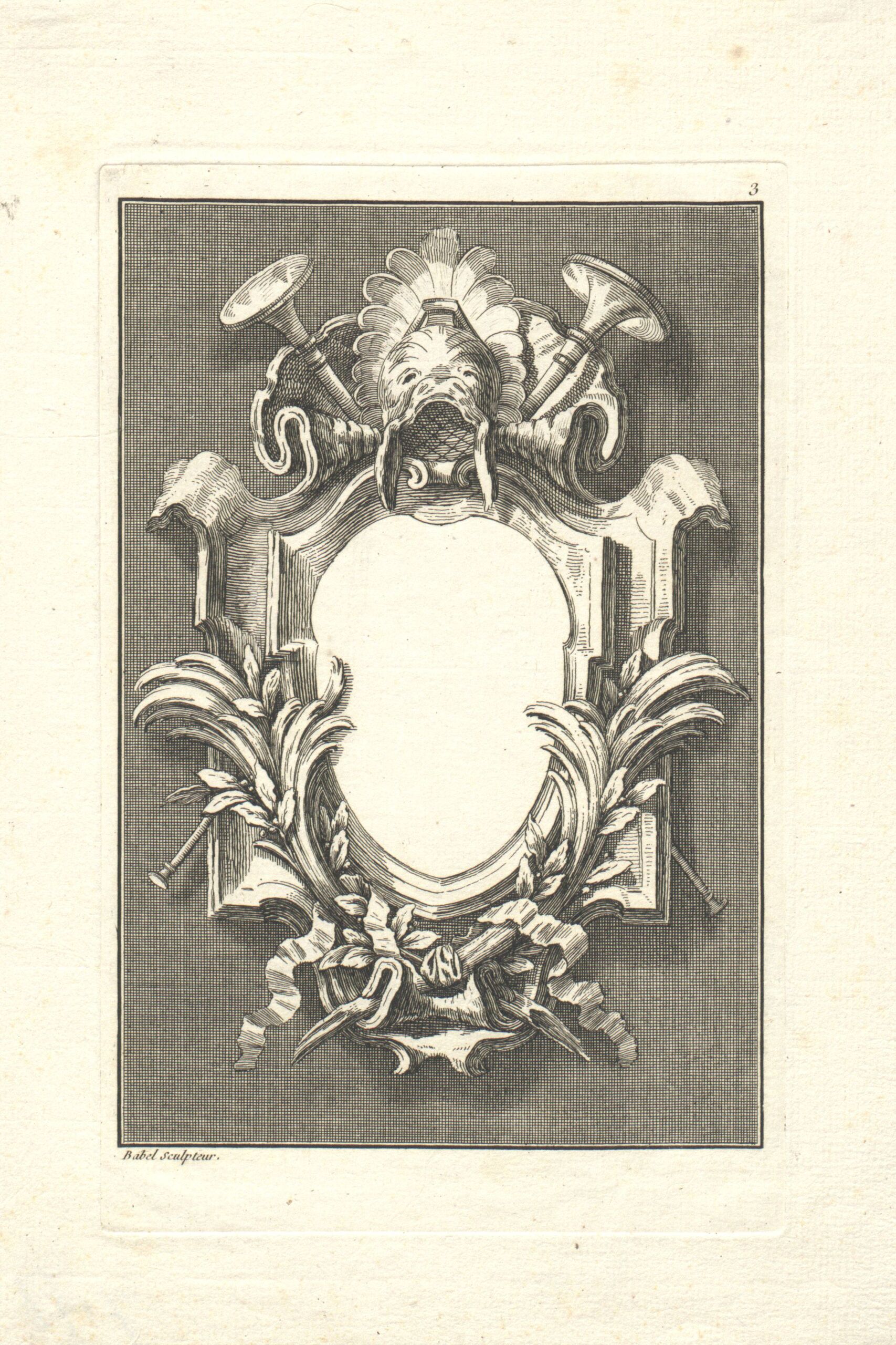 ornamental engraving, Kartusche, Blatt 3 aus der Folge „Cartels Nouveaux. Livre 3.eme“, herausgegeben von J. Chereau, Pierre-Edme Babel, MAK Inv.nr. KI 1-719-4