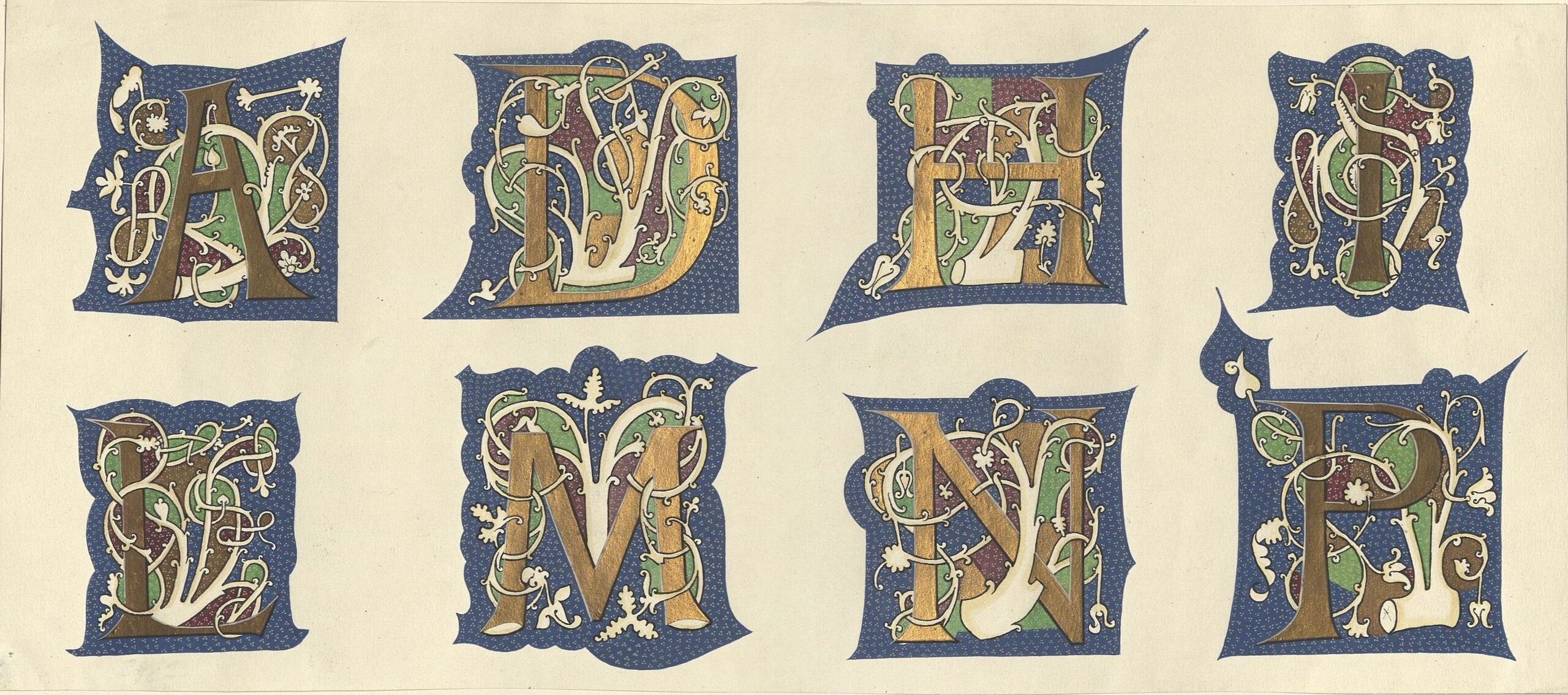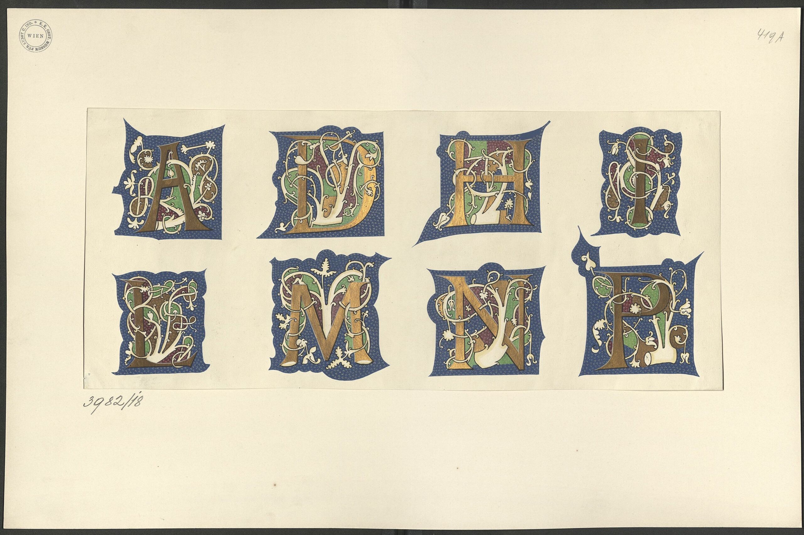 - Kopie der Initialen A, D, H, I, L, M, N und P aus einer mittelalterlichen Handschrift in einer österreichischen Stiftsbibliothek von P. Findeys (given title)