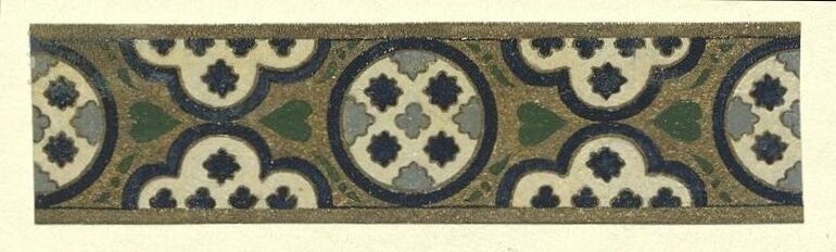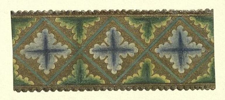 - Kopie der Seitenansicht und der Draufsicht eines in Leder auf Pappe geschnittenen und punzierten Kästchens in Truhenform mit reichen Eisenbeschlägen aus dem 15. Jahrhundert im Germanischen Nationalmuseum zu Nürnberg (Inv.Nr. HG 295) von Joseph Capellmann (given title)