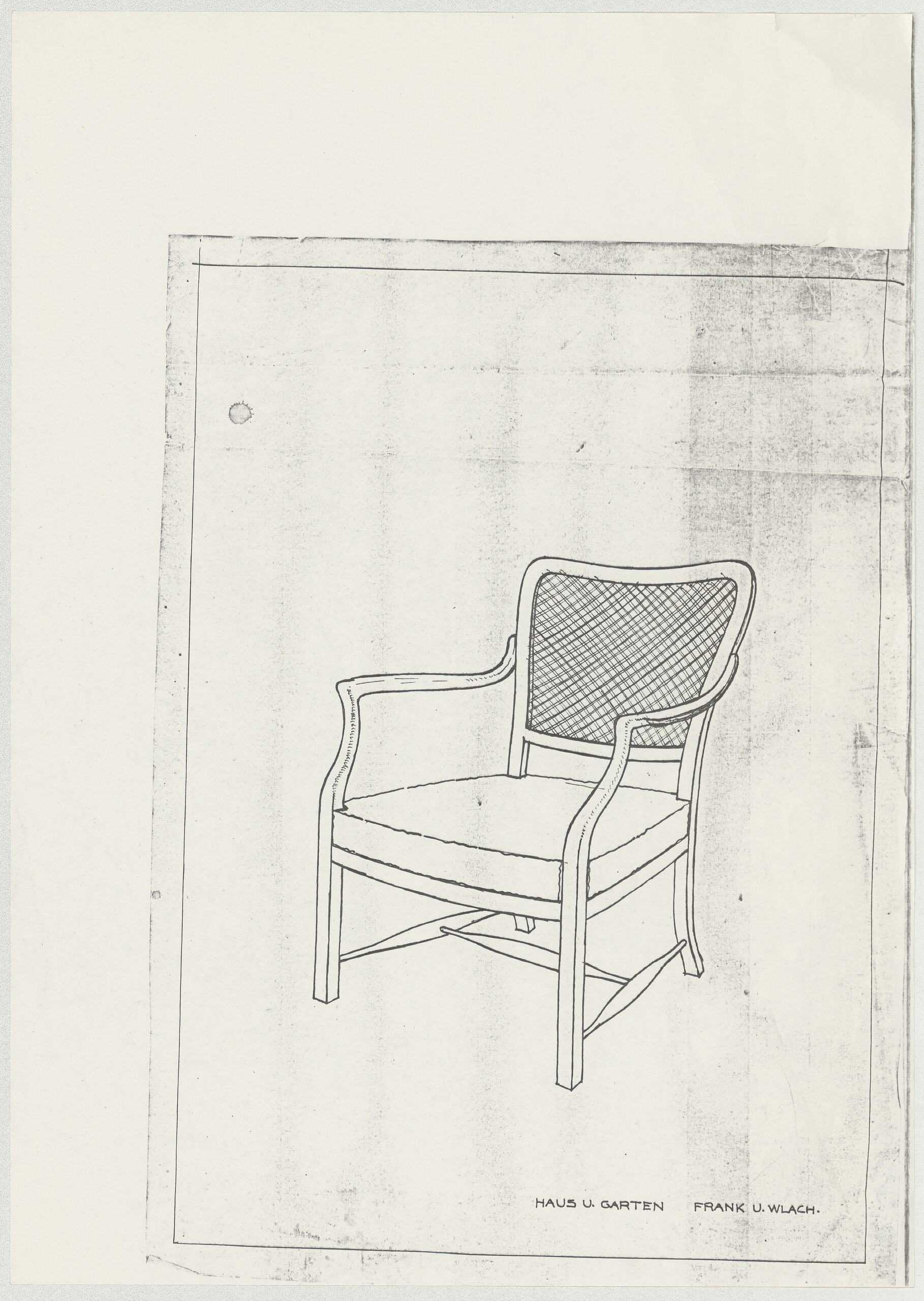 furniture design, Kopie des Entwurfs für einen Stuhl mit einem eingeflochtenen Holzrahmen (Typ B), Skizze, Josef Frank, MAK Inv.nr. KI 23497-341