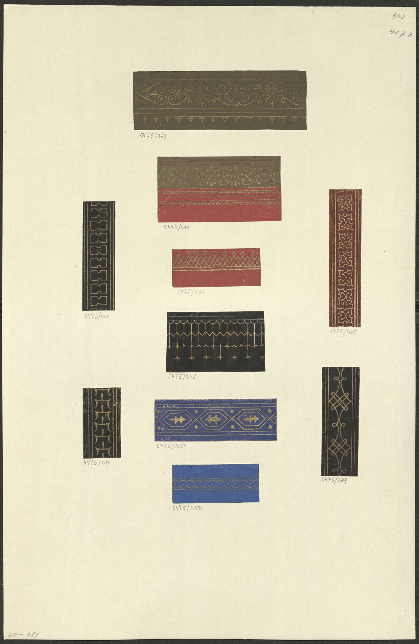 artwork copy, Kopie einer schwarzen Borte mit goldfarbenem verschlungenem Muster von Friedrich Fischbach, Friedrich Fischbach, MAK Inv.nr. KI 5475-249