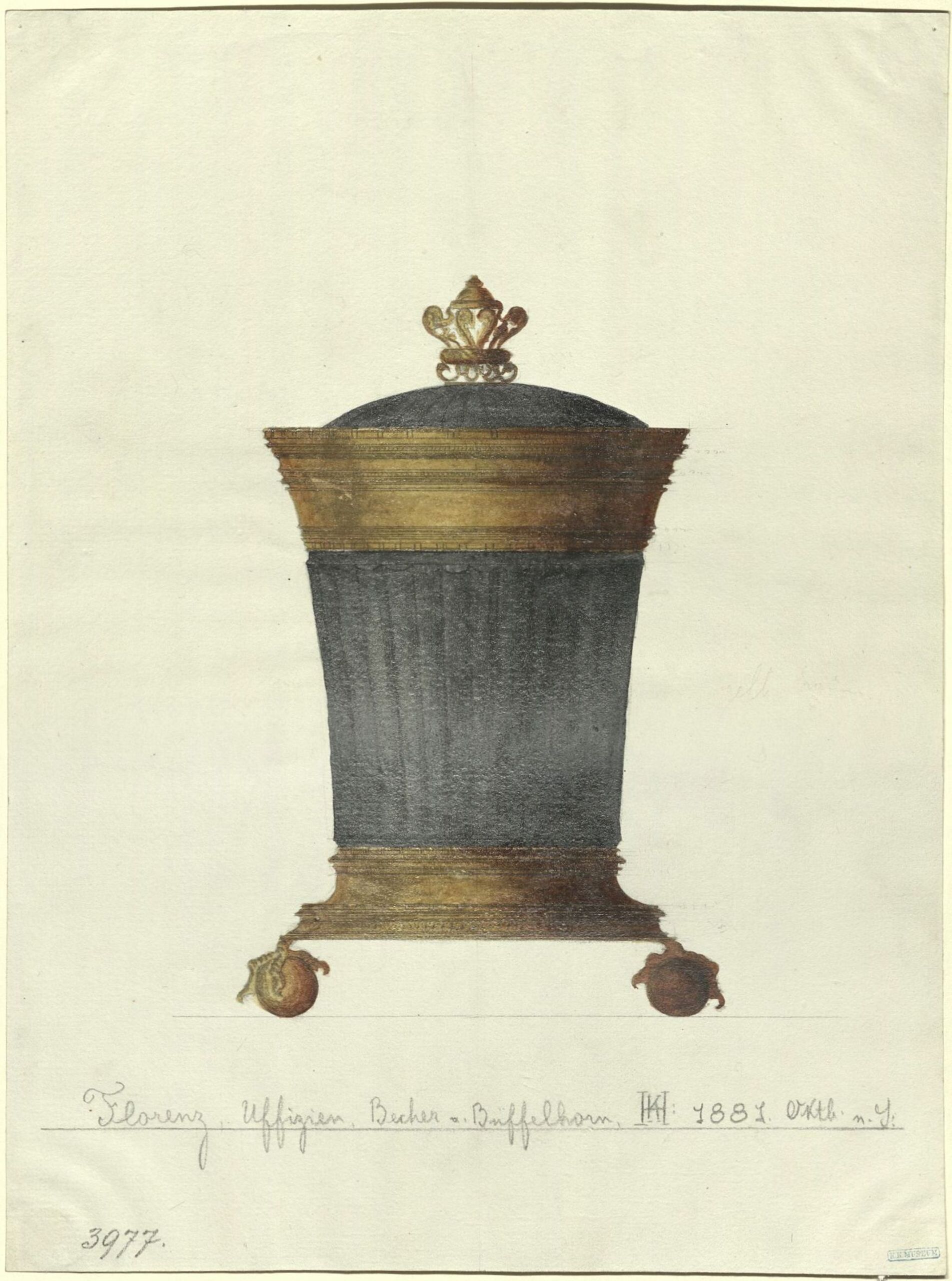 - 作品に記載されている文章 (unten) : [Vorderseite:] "Florenz, Uffizien, Becher v. Büffelhorn, HK [Monogramm Heinrich Kautsch: "K" im Balken des "H"]: 1881. Oktb. n. G: / 3977." [Rückseite:] "3977/126"