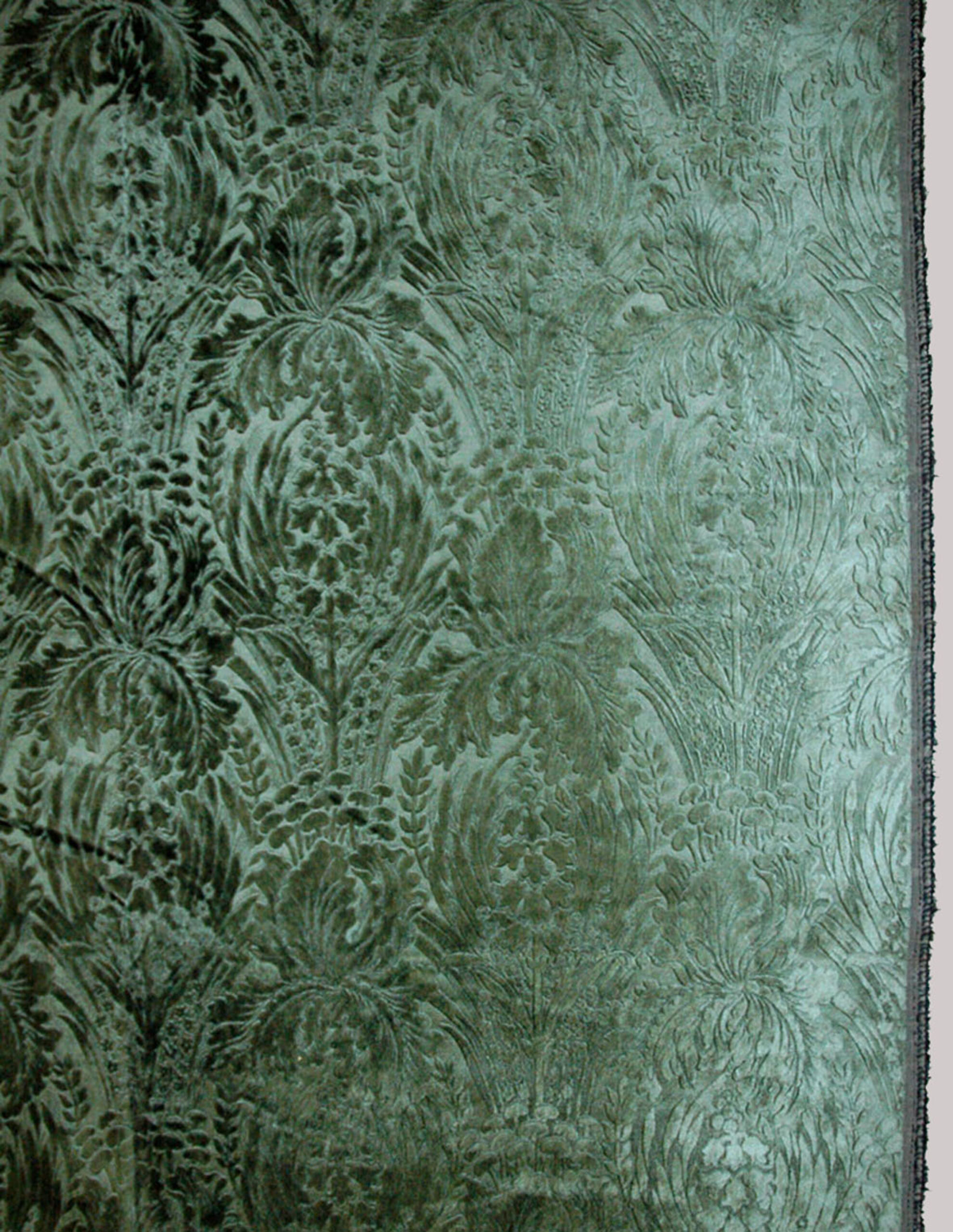 decorative fabric, Large flowers and leaves, green, Anonym, MAK Inv.nr. T 6751