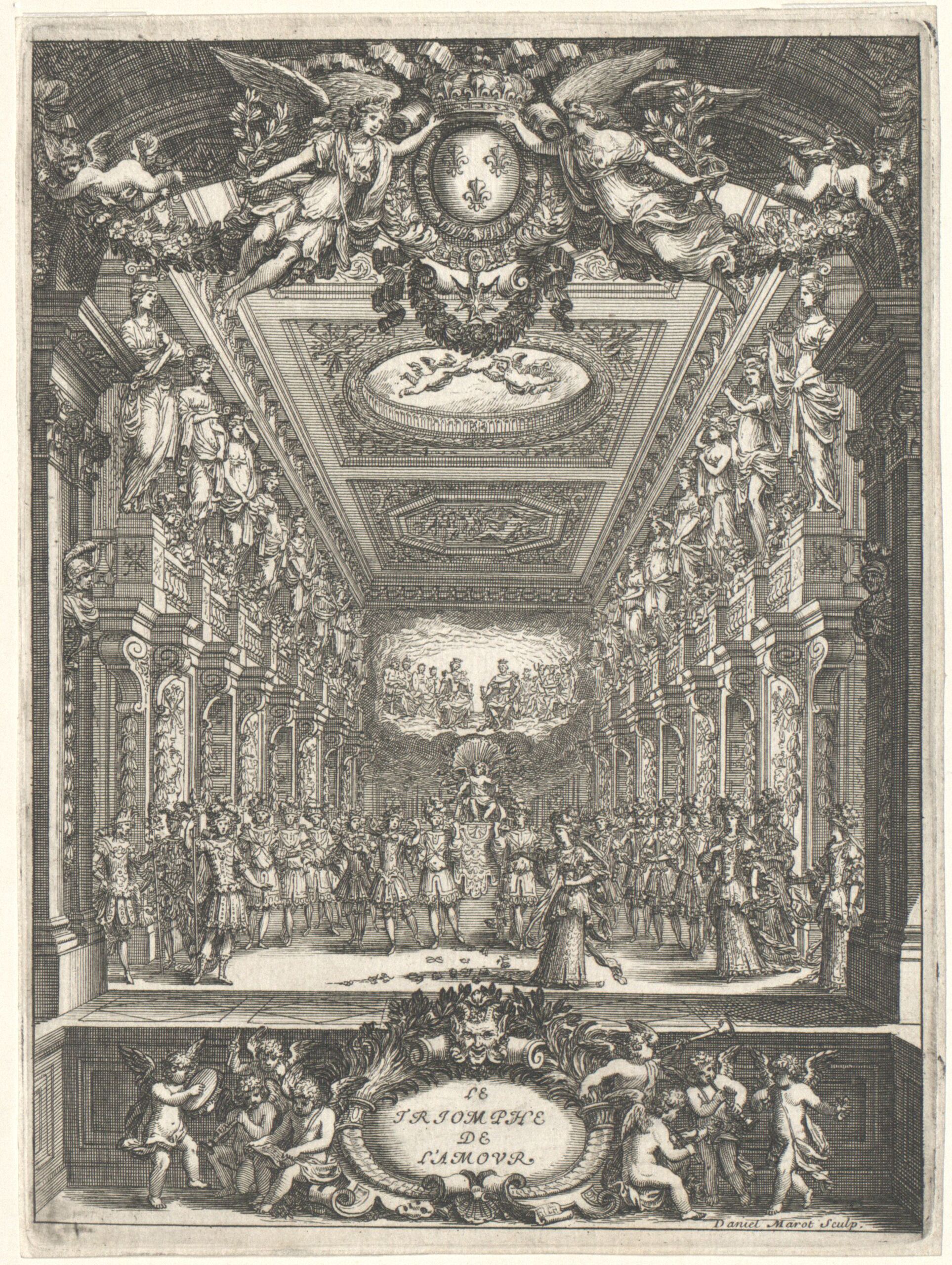 Druckgrafik, „Le Triomphe de l’ amour”, Bühnenbild mit Staffage, Daniel Marot, MAK Inv.nr. KI 1-664