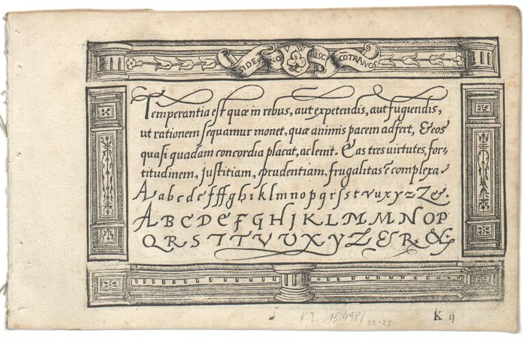 - alphabet, Blatt N III aus der Folge „Libellus Valde Doctus, elegans, & utilis, multa & varia scribendarum literarum genera completens.”, vgl. Drugulin S. 72 (D. 1060)