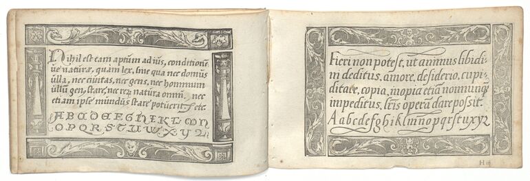 - alphabet, Blatt N II aus der Folge „Libellus Valde Doctus, elegans, & utilis, multa & varia scribendarum literarum genera completens.”, vgl. Drugulin S. 72 (D. 1060)