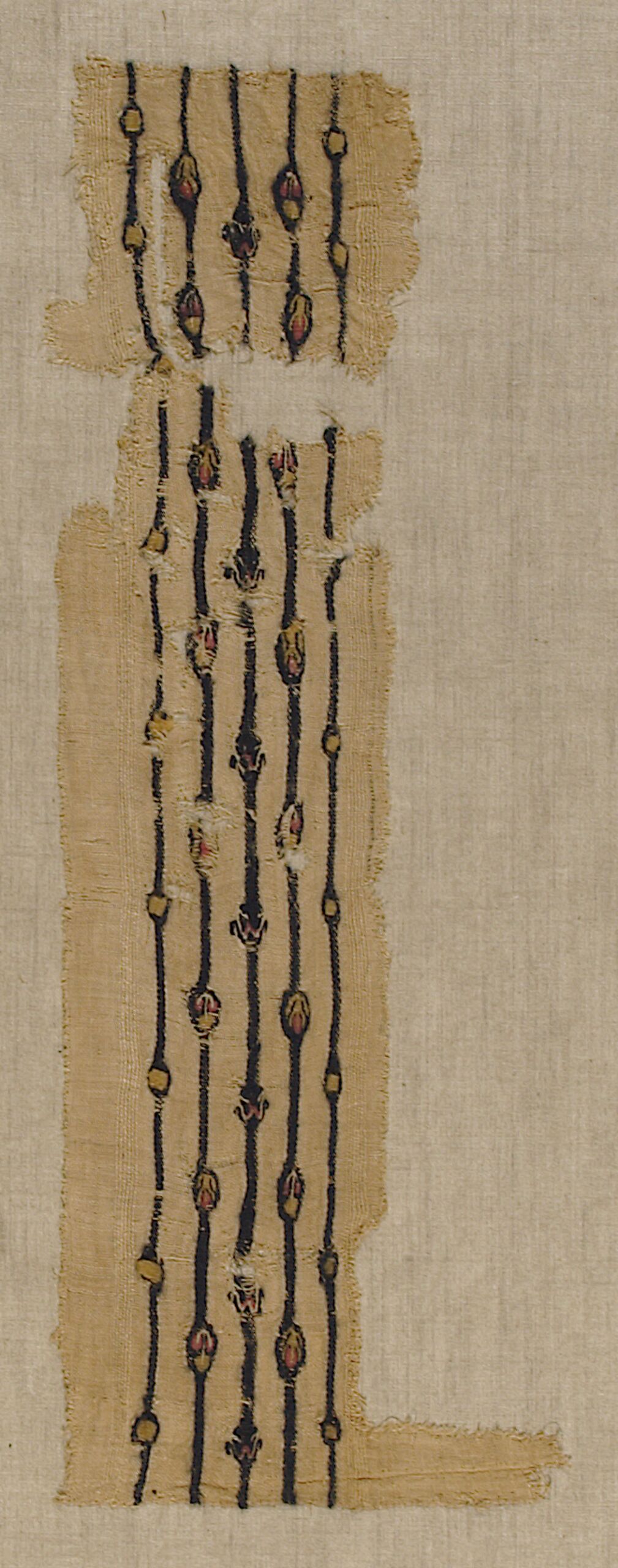 woven textile fragment, Linen weave with five narrow stripes and small stylised floral and foliate embellishments, Anonym, MAK Inv.nr. T 10557