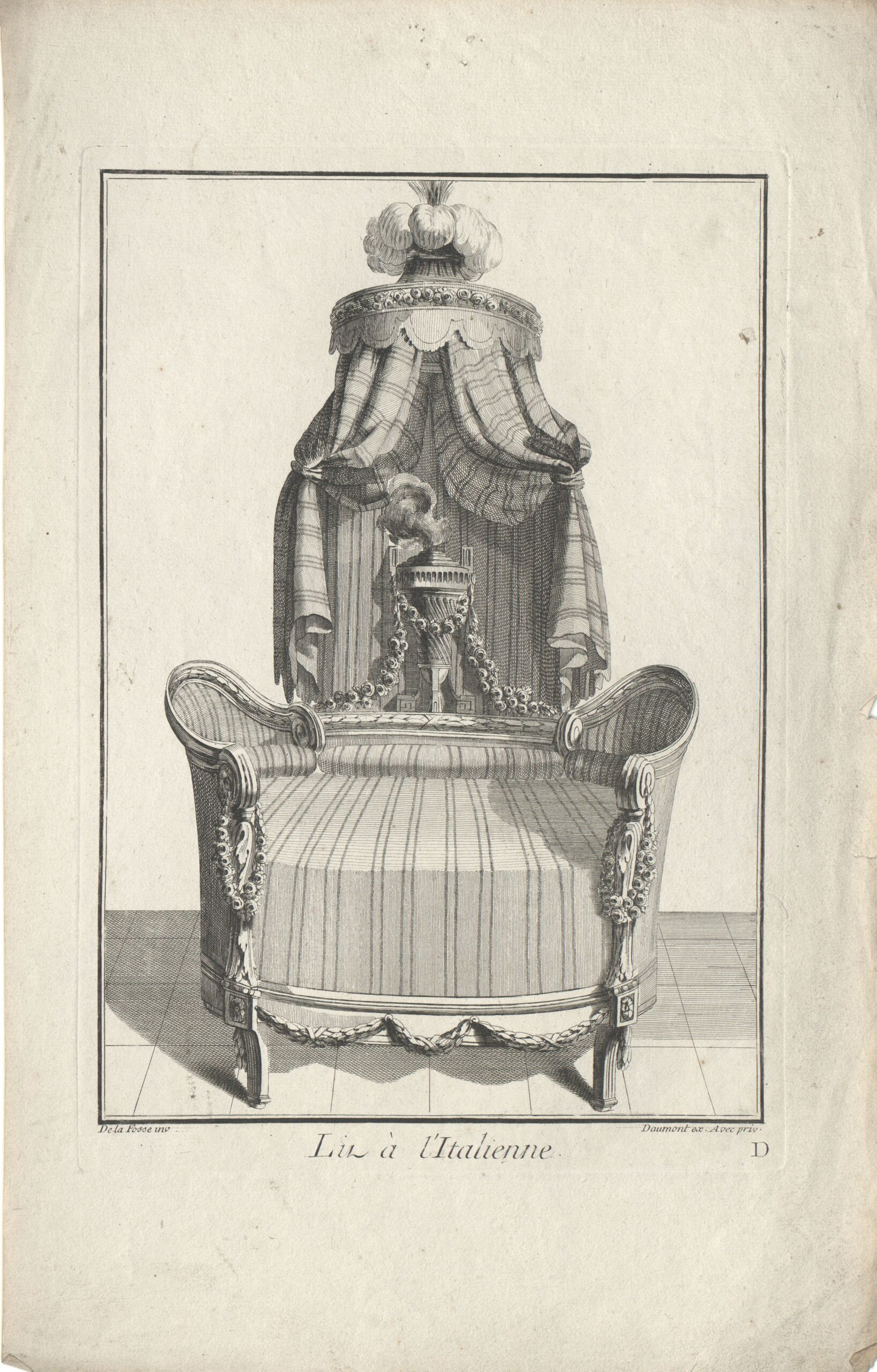 - 作品に記載されている文章: Lit à l’ Italienne / De la Fosse inv., Daumont ex. Avec priv. / D