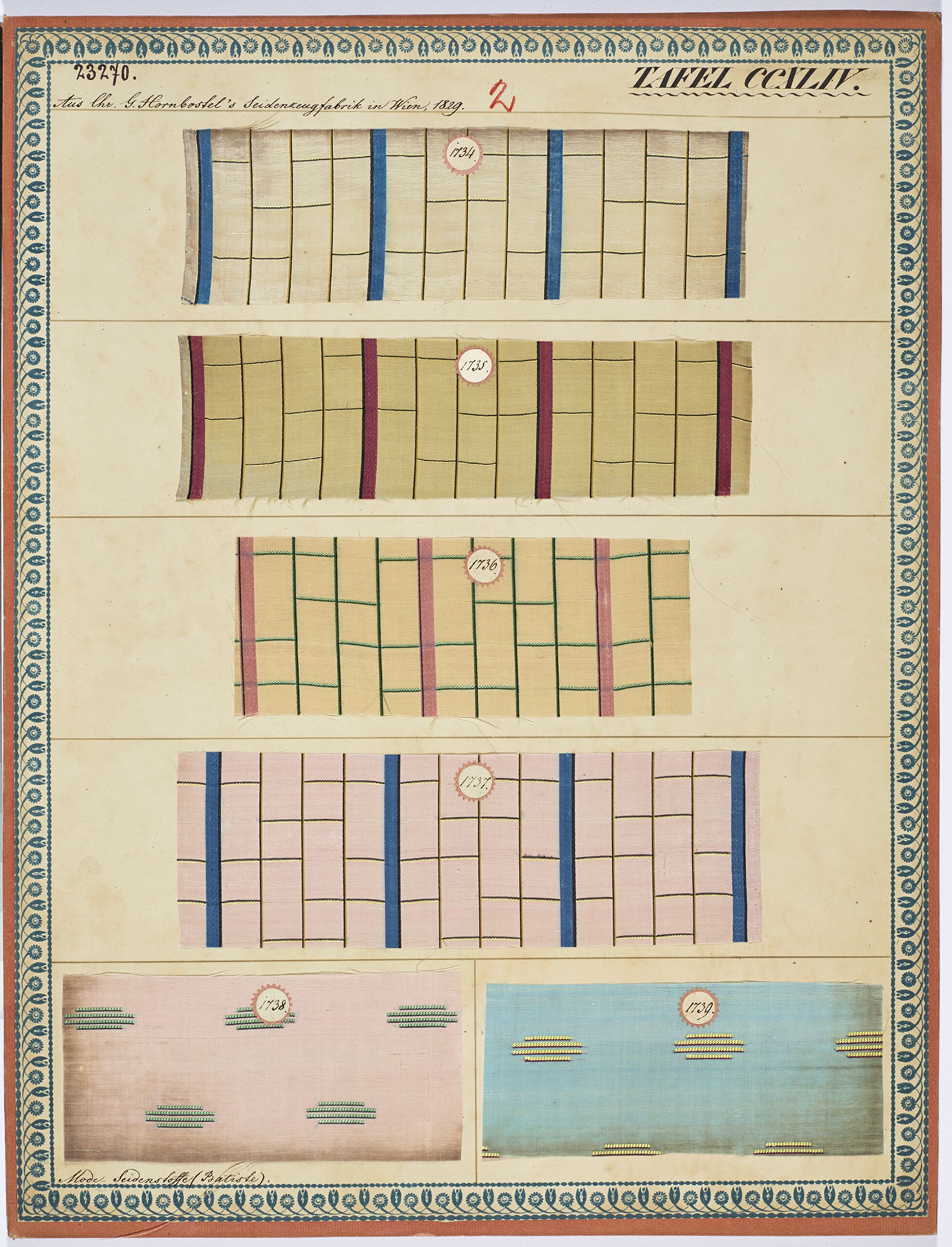 - label (front) : Aus Chr. G. Hornbostel's Seidenzeugfabrik in Wien, 1829. / Mode-Seidenstoffe (Batiste).