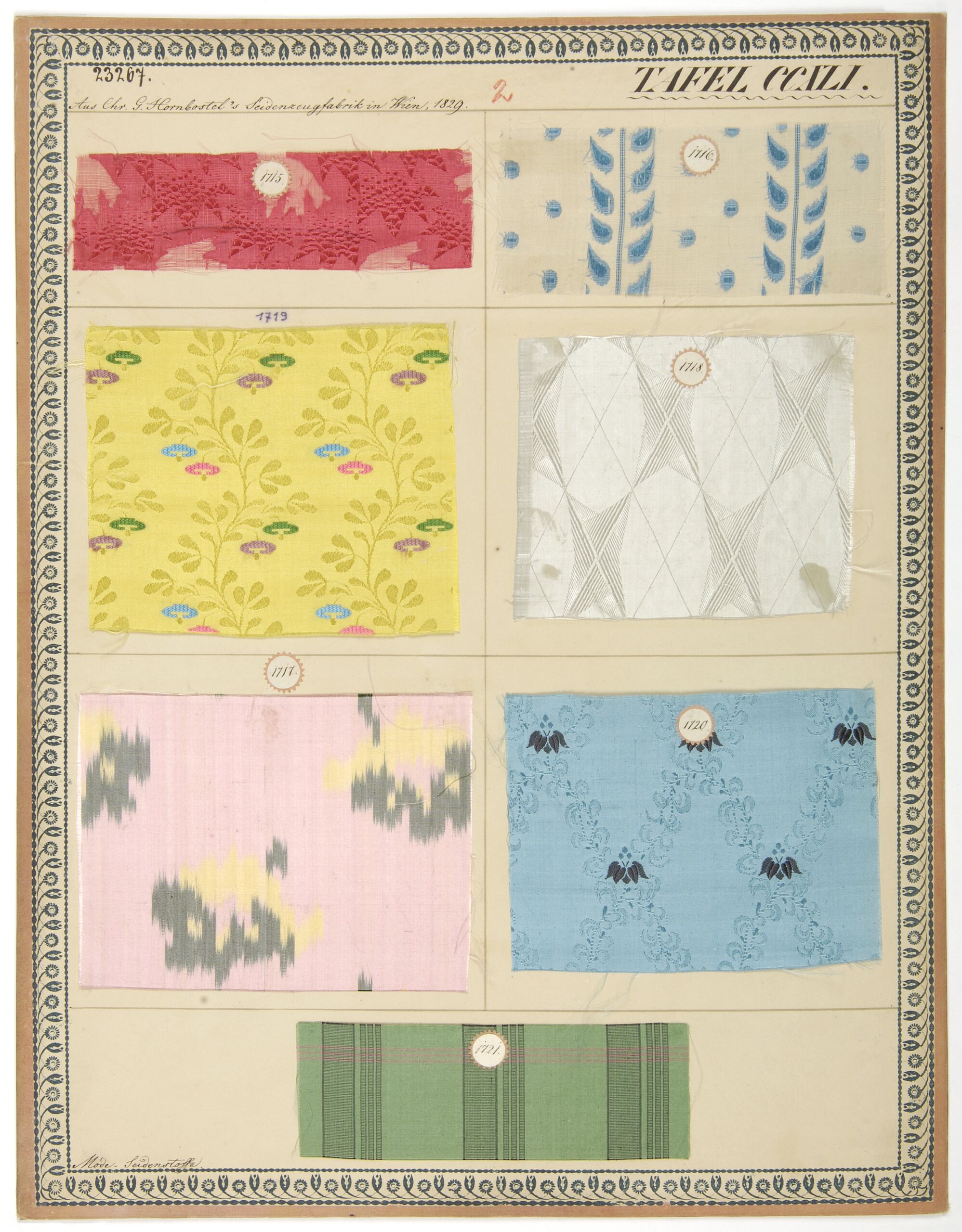 - label (front) : Aus Chr. G. Hornbostel's Seidenzeugfabrik in Wien, 1829. / Mode-Seidenstoffe.