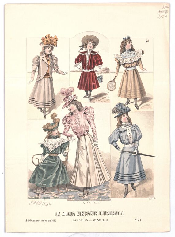 - 作品に記載されている文章: 38; 6 de Junio de 1897; LA MODA ELEGANTE ILUSTRADA / Arenal 18 MADRID; N° 21