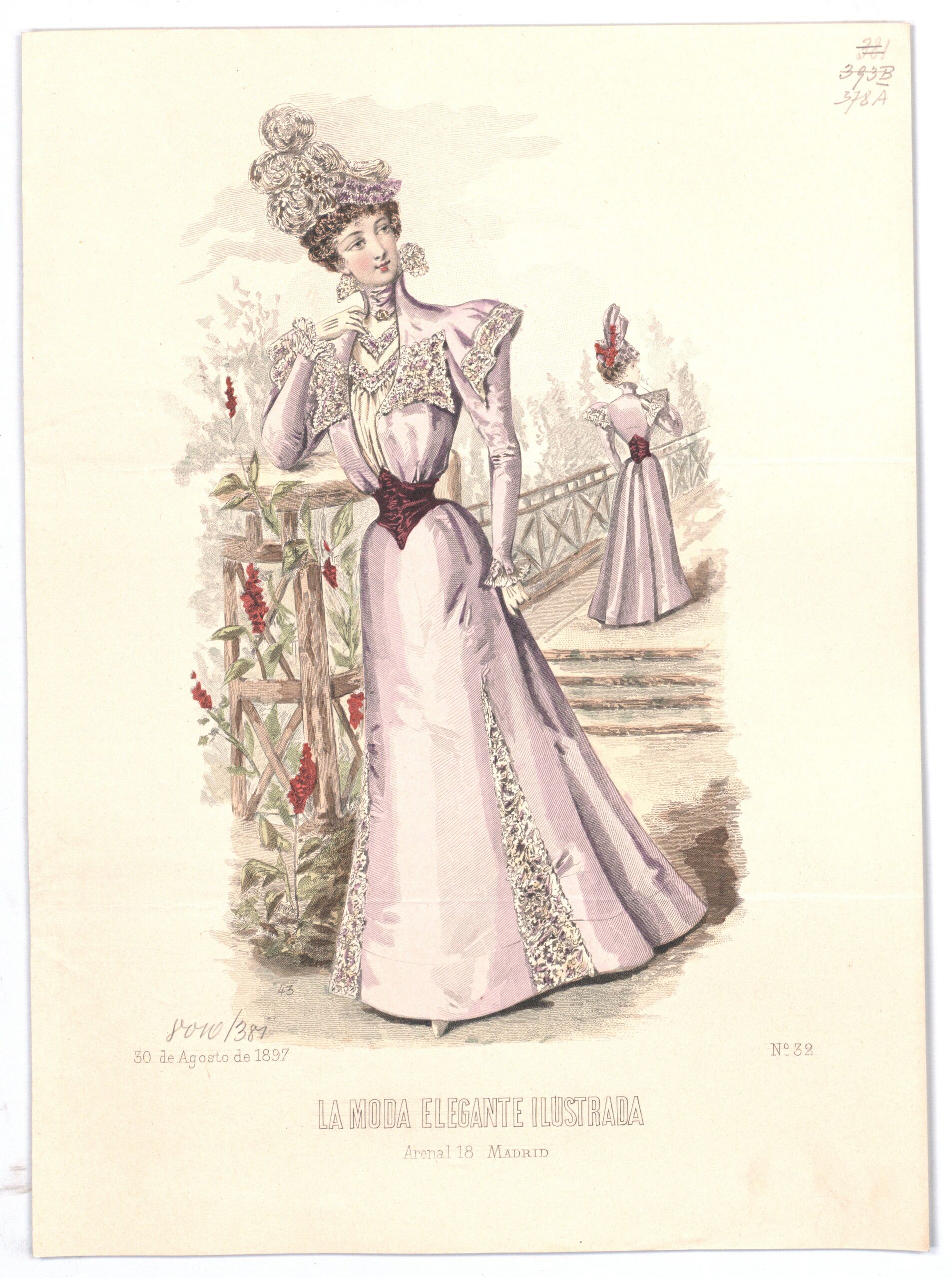 - 作品に記載されている文章: 43; 30 de Agosto de 1897; LA MODA ELEGANTE ILUSTRADA / Arenal 18 MADRID; N° 32