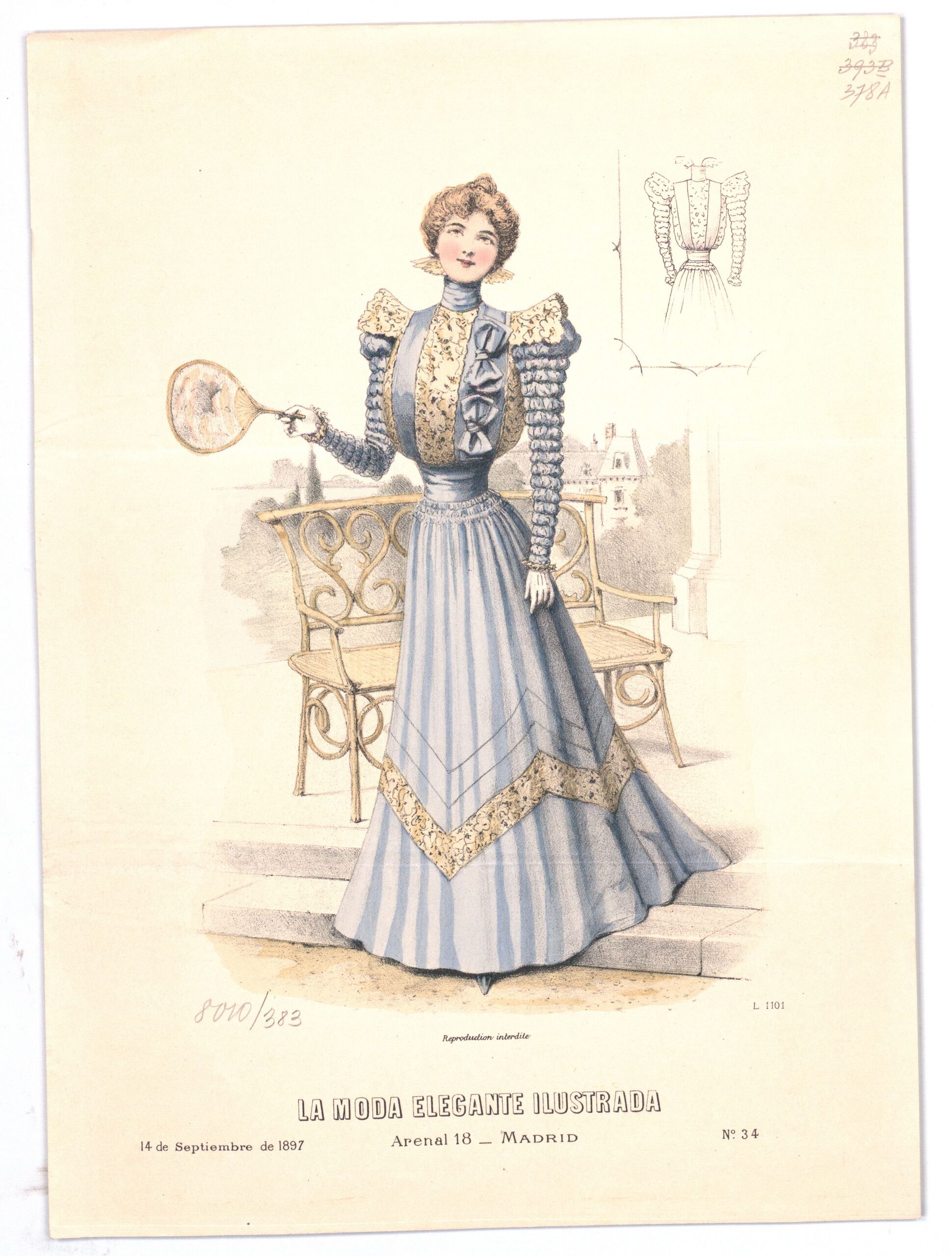 - 作品に記載されている文章: L 1101; 14 de Septiembre de 1897; Reproduction interdite. / LA MODA ELEGANTE ILUSTRADA / Arenal 18 MADRID; N° 34