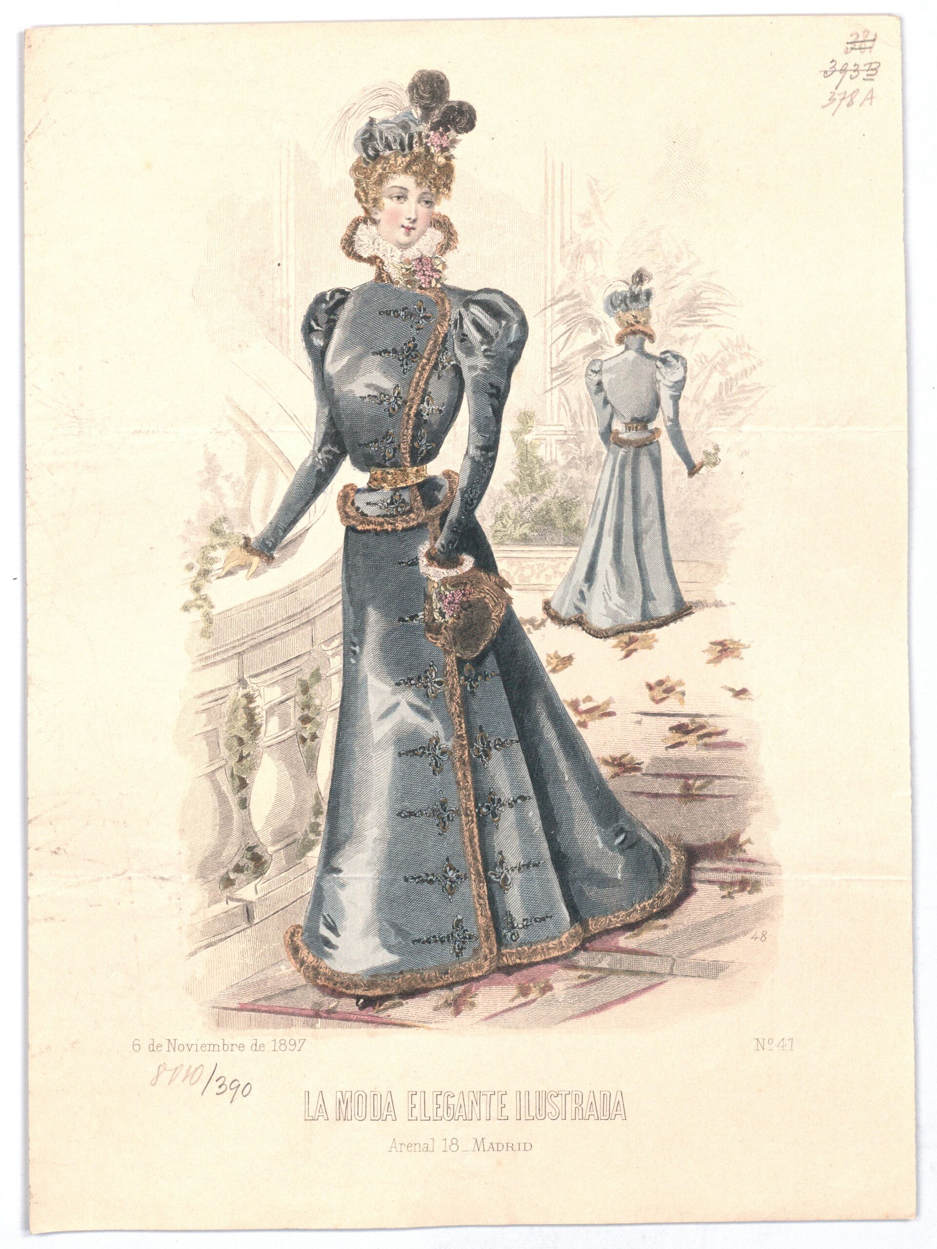 - 作品に記載されている文章: 48; 6 de Noviembre de 1897; LA MODA ELEGANTE ILUSTRADA / Arenal 18 MADRID; N° 41
