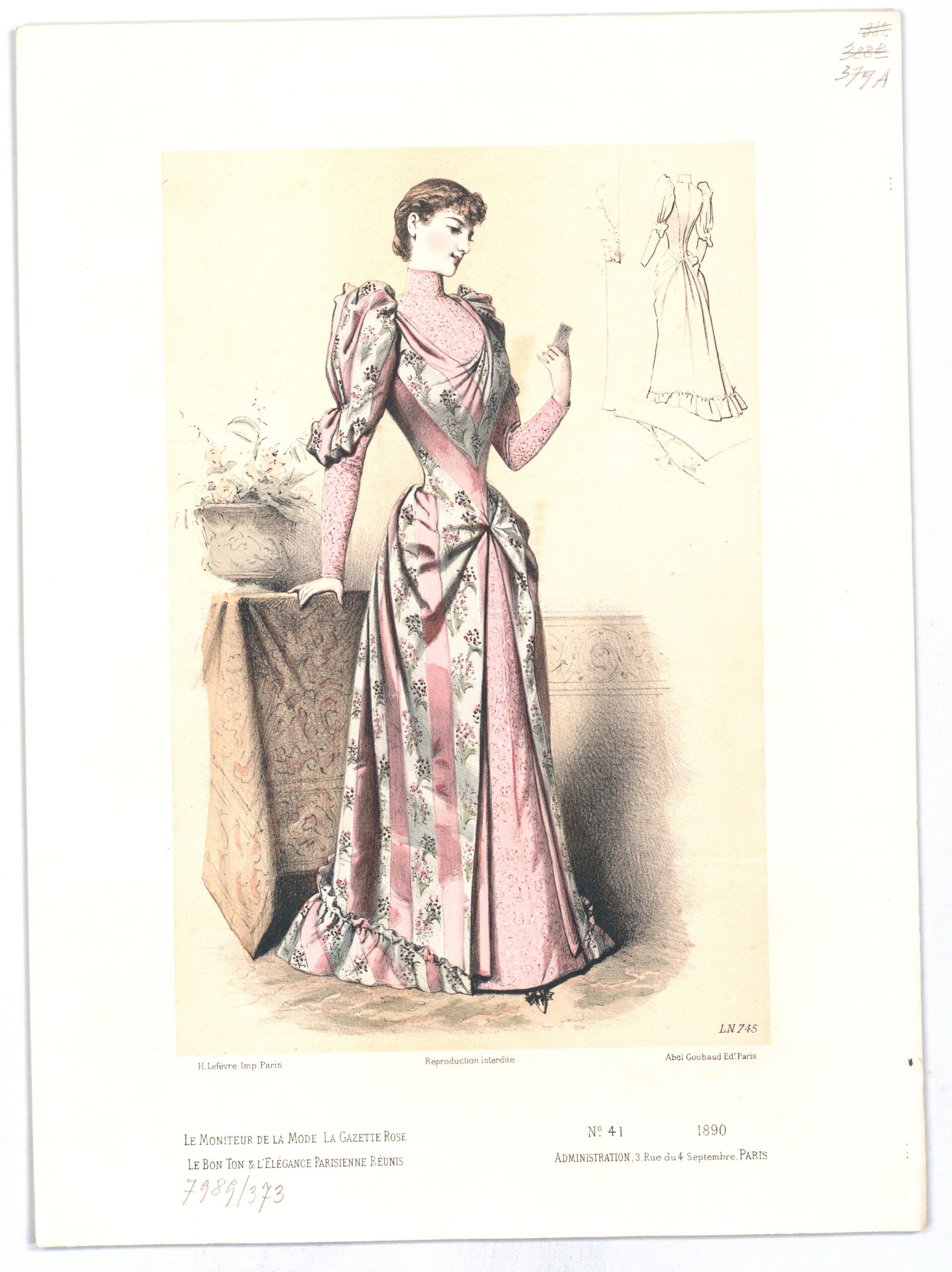 - 作品に記載されている文章: LN 745; H. Lefévre. Imp. Paris; Reproduction Interdite; Abel Goubaud Editeur; Le Moniteur de la Mode, la gazette rose / le bon ton & l'elégance parisienne réunis; N° 41 1890 / Administration, / 3, Rue du 4 Septembre, PARIS