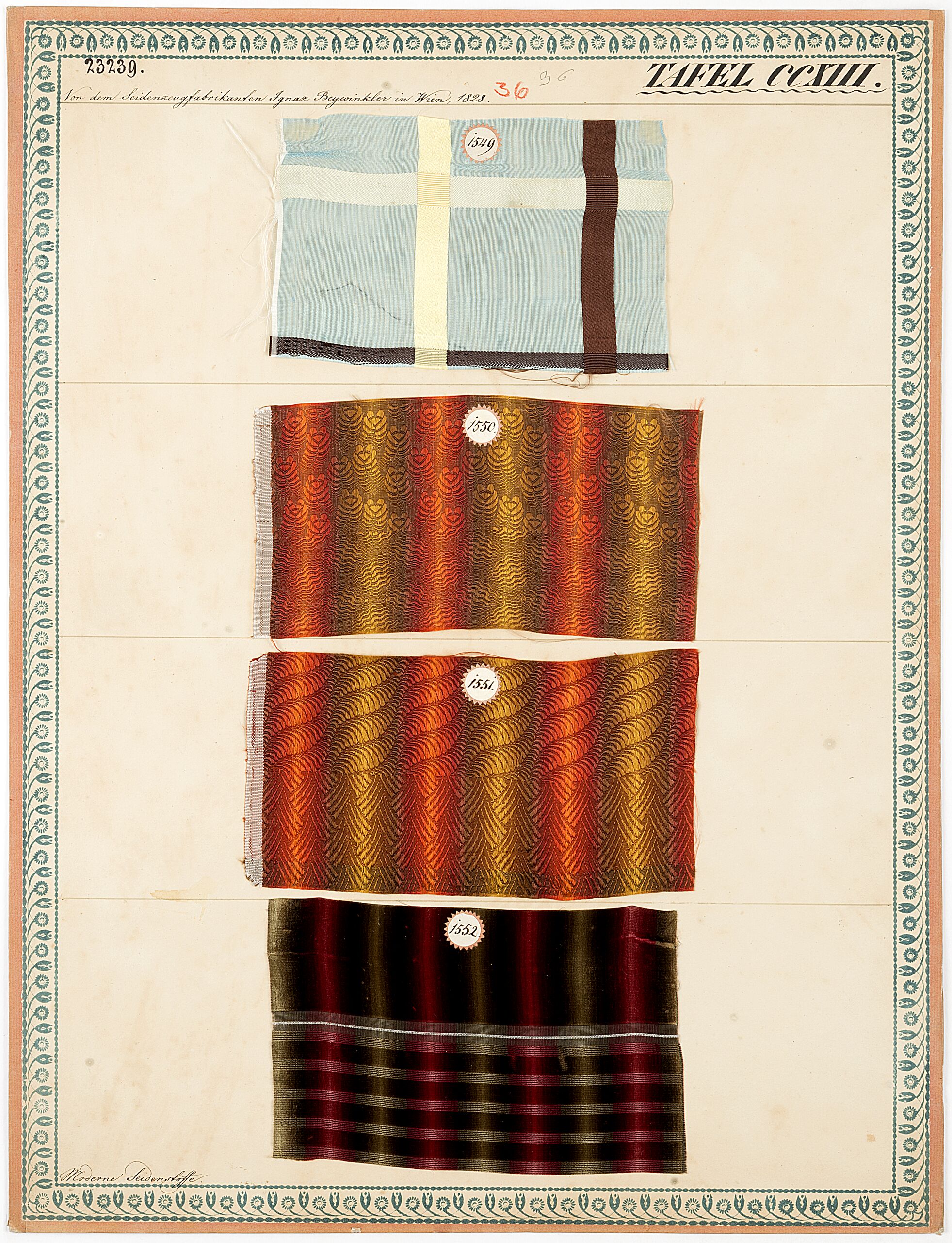 - label (front) : Von dem Seidenzeugfabrikanten Ignaz Beywinkler in Wien, 1828. / Moderne Seidenstoffe.