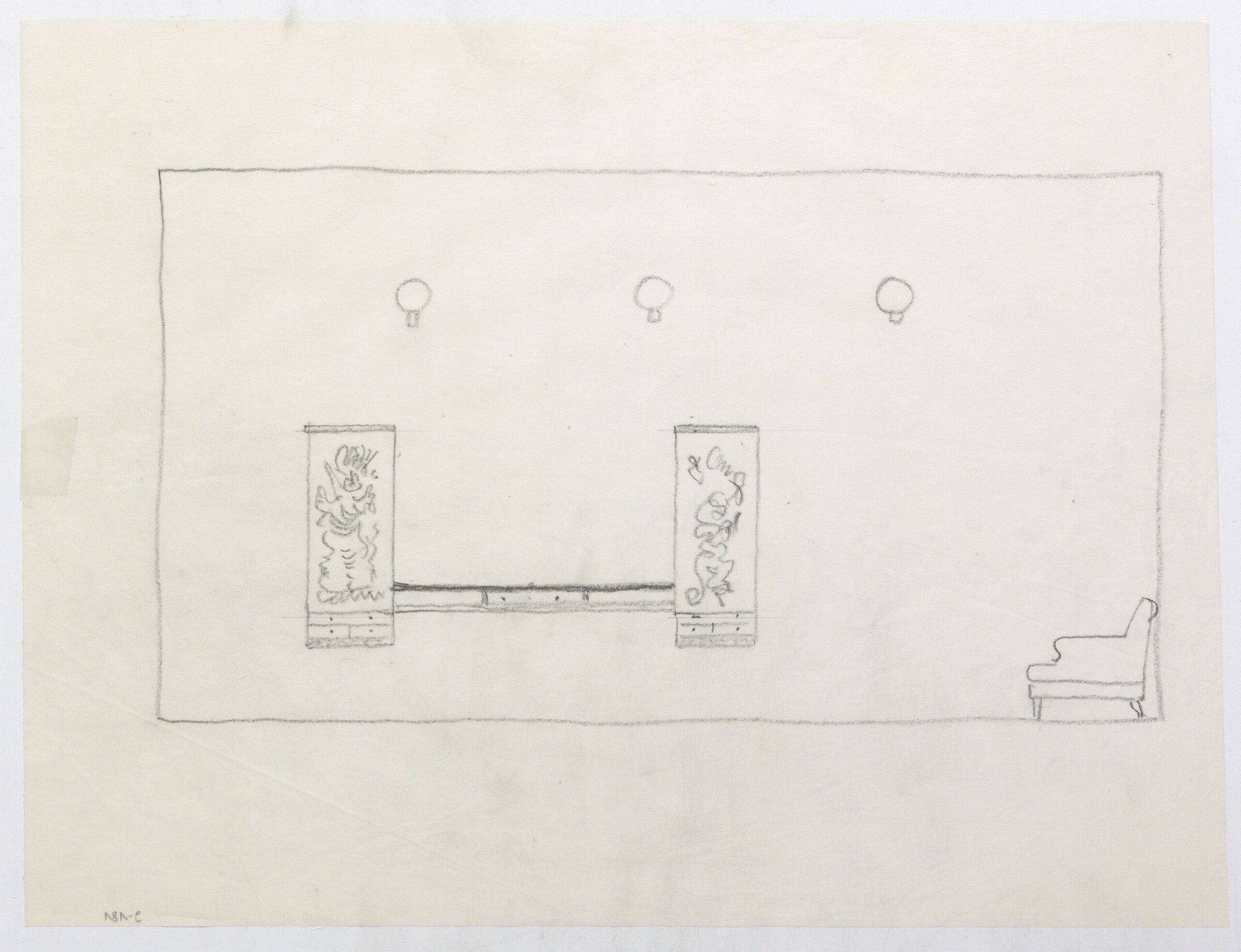 - Möbelentwurf zu der Büffet-Einheit, Verzierung der Kastentüren mit indischen Handdrucken (given title)