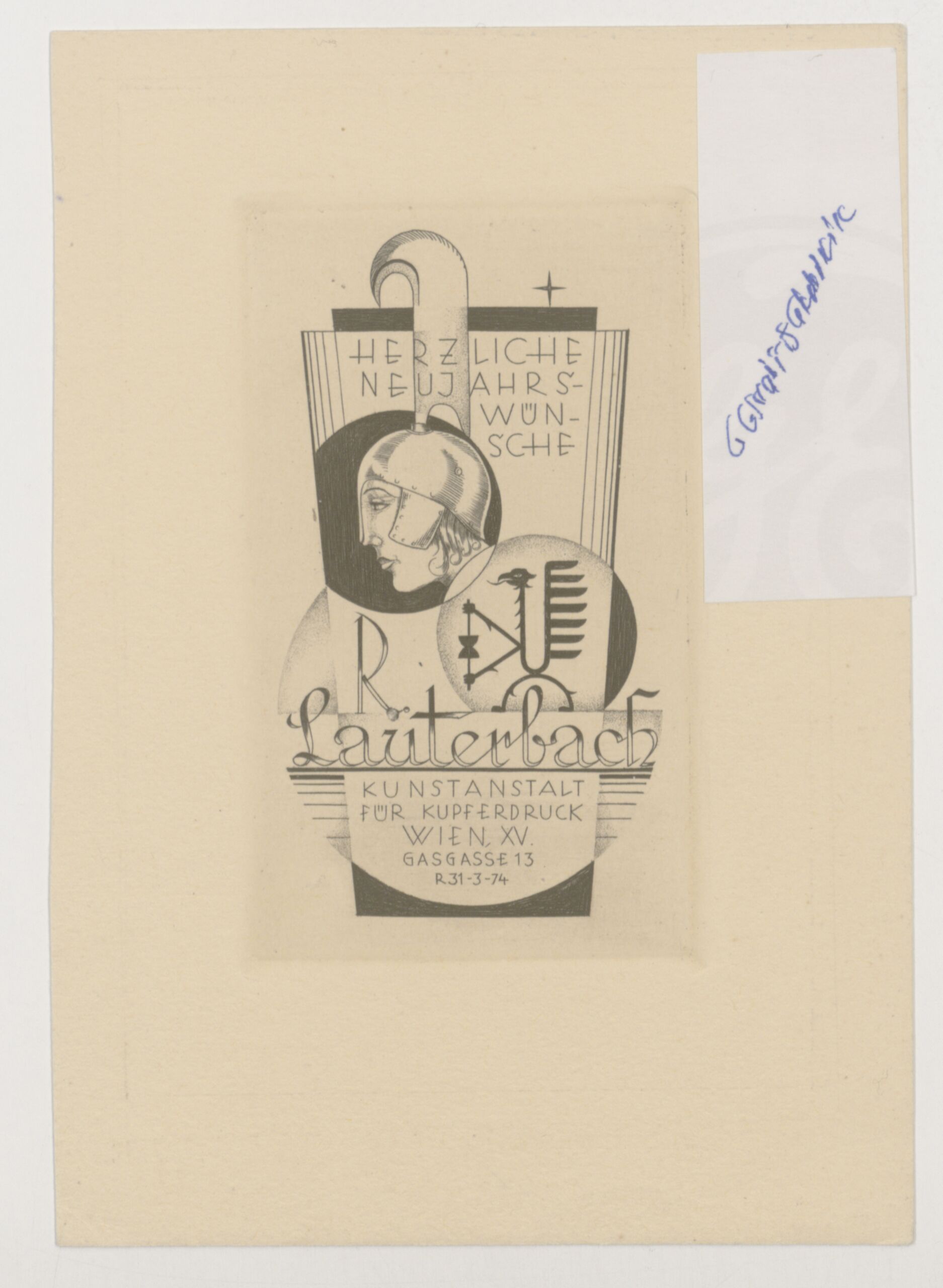 New Year card, Neujahrskarte von Hubert Woyty-Wimmer: Herzliche Neujahrswünsche R. Lauterbach Kunstanstalt für Kupferdruck, Hubert Woyty-Wimmer, MAK Inv.nr. KI 23264-32