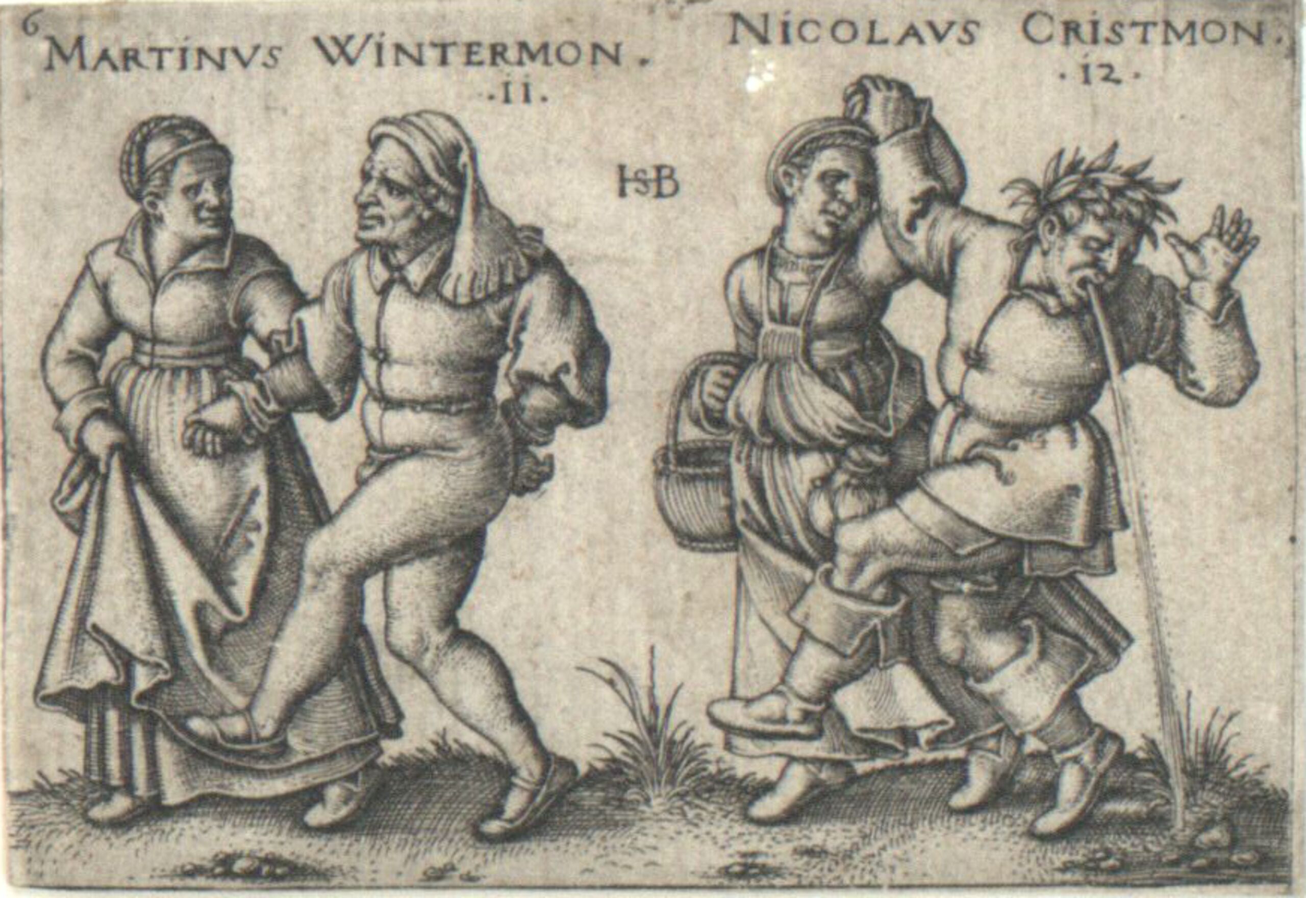 Druckgrafik, November und Dezember, Blatt 6 aus der Folge der Bauerntänze (auch die zwölf Monate), Sebald Beham, MAK Inv.nr. KI 3527-3