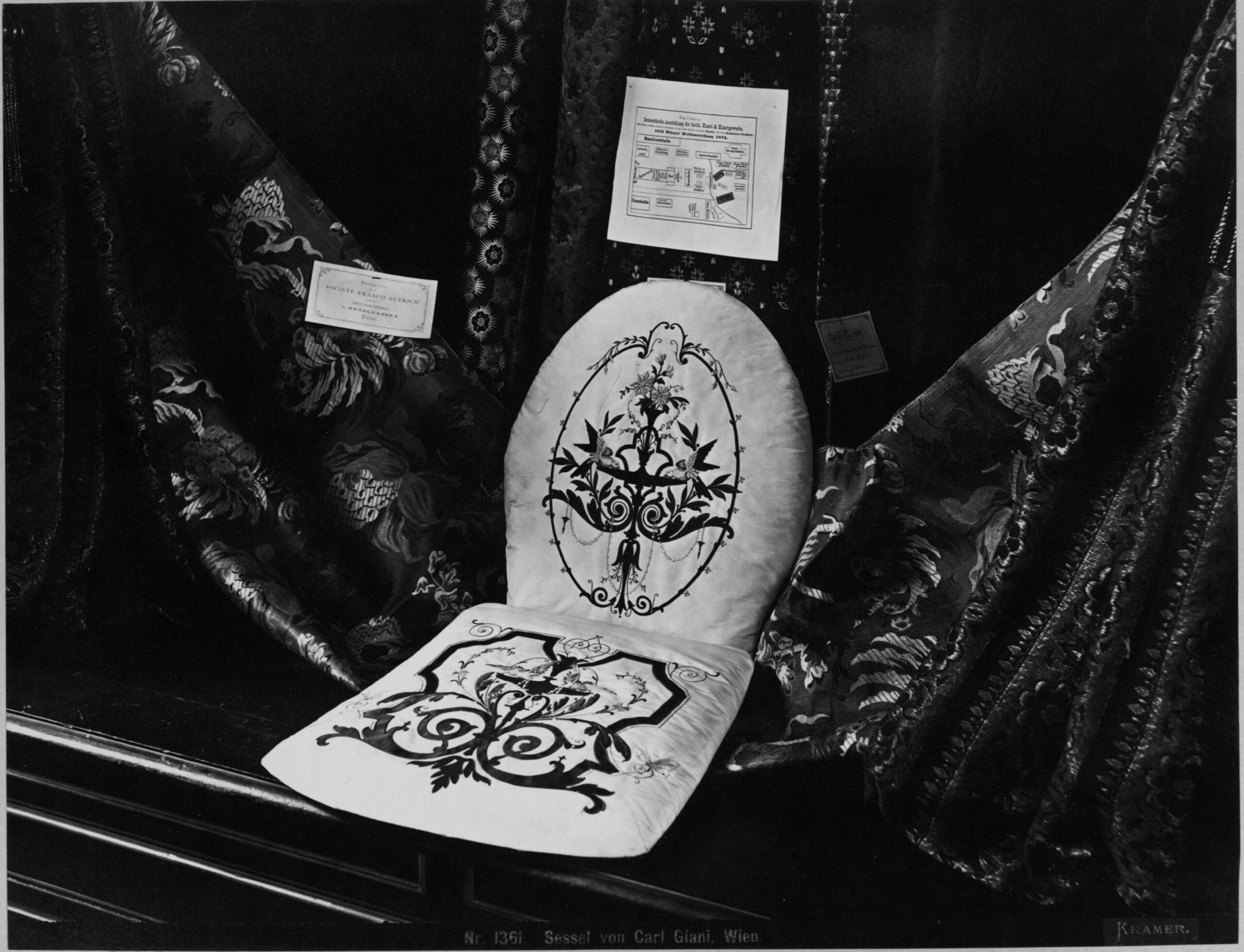 - 作品に記載されている文章: Exposition universelle de Vienne 1873.; Universal Exhibition of Vienna 1873; Weltausstellung in Wien 1873 / Photographie und Verlag der concessionirten / Wiener Photographischen Association: Sessel von Carl Giani, Wien