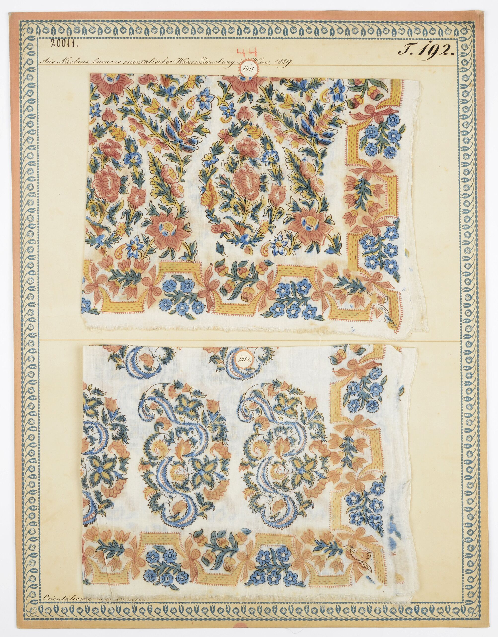 - label (front) : Aus Nicolaus Lazarus orientalischer Waarendruckerei in Wien, 1839. / Orientalisches Tüchelmuster.