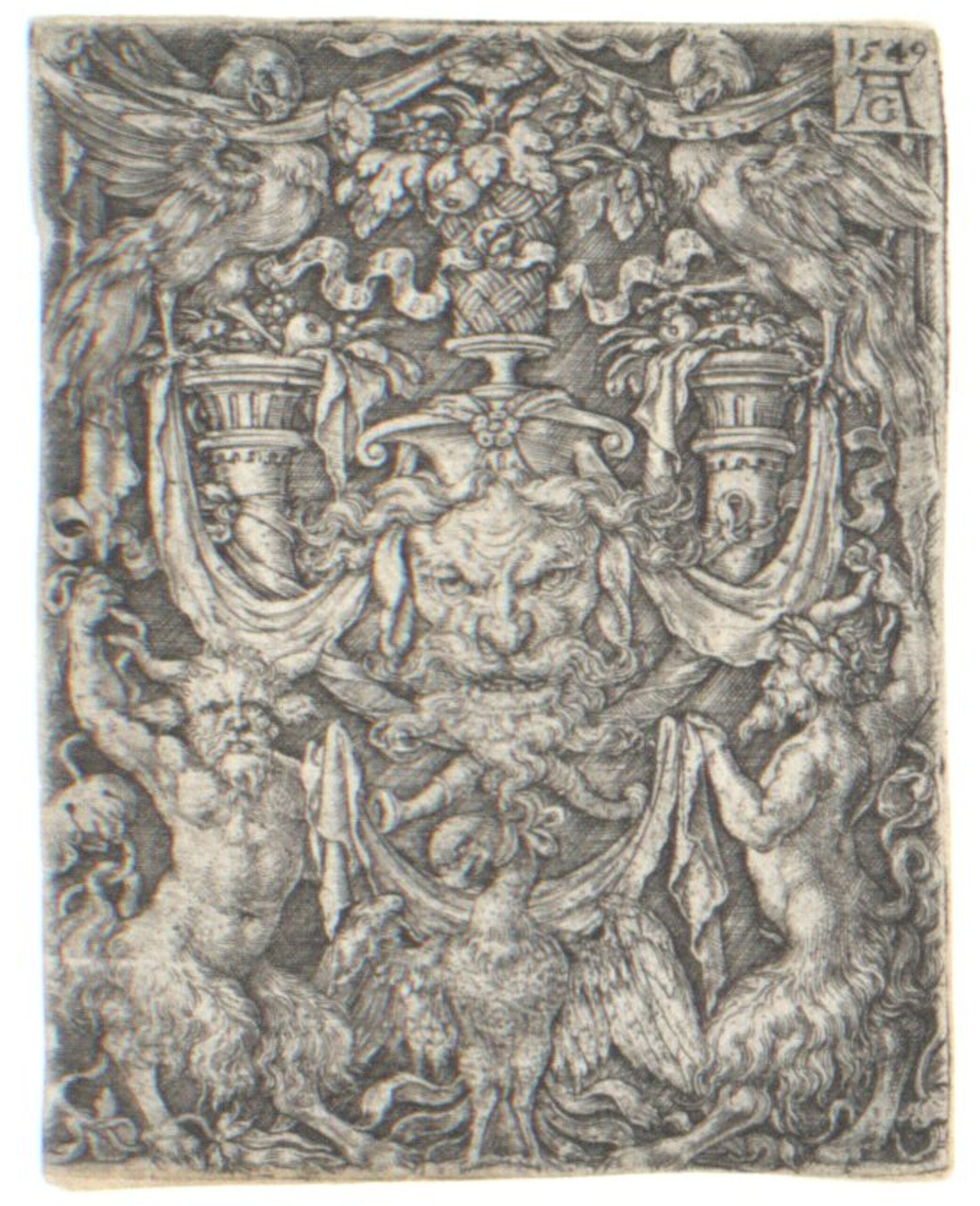 ornamental engraving, Ornament mit Maske und Satyrn, Heinrich Aldegrever, MAK Inv.nr. KI 981