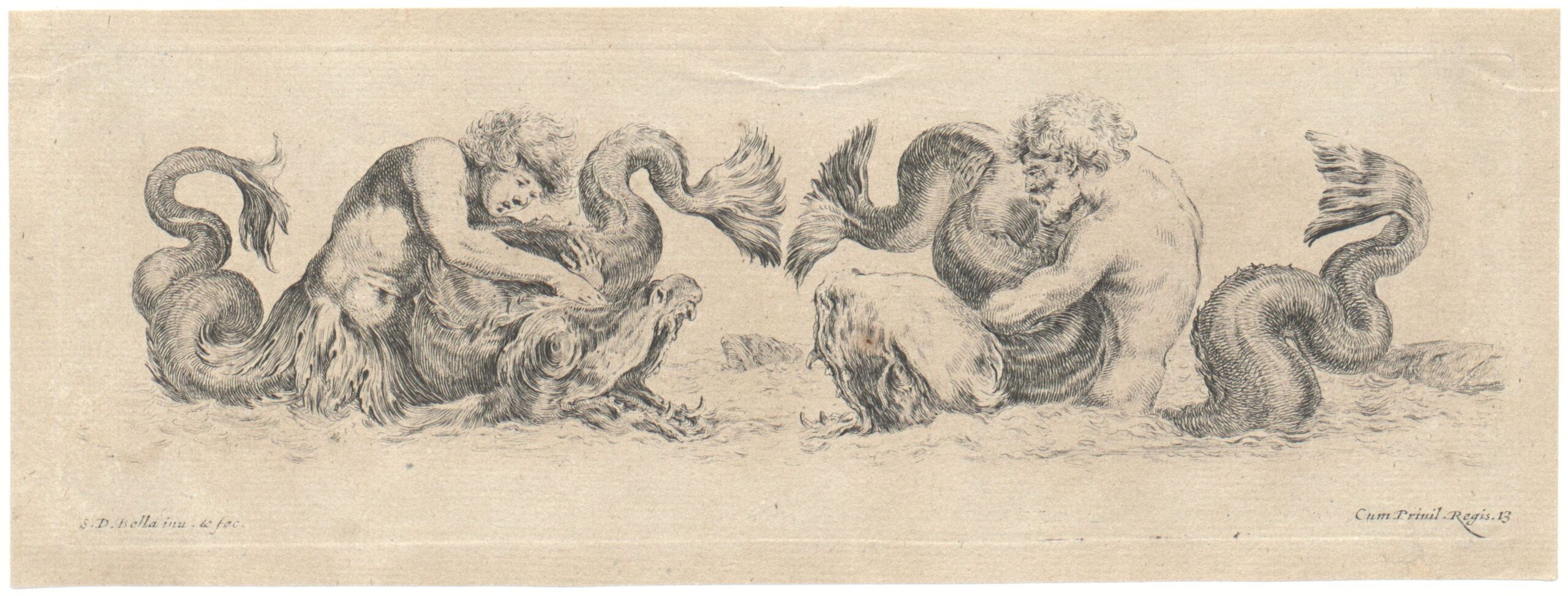 ornamental engraving, Ornamentfries mit Meeresungeheuern, Blatt 13 aus der Folge „Ornamenti di Fregi et fogliami“, Stefano della Bella, MAK Inv.nr. KI 1-1024-16