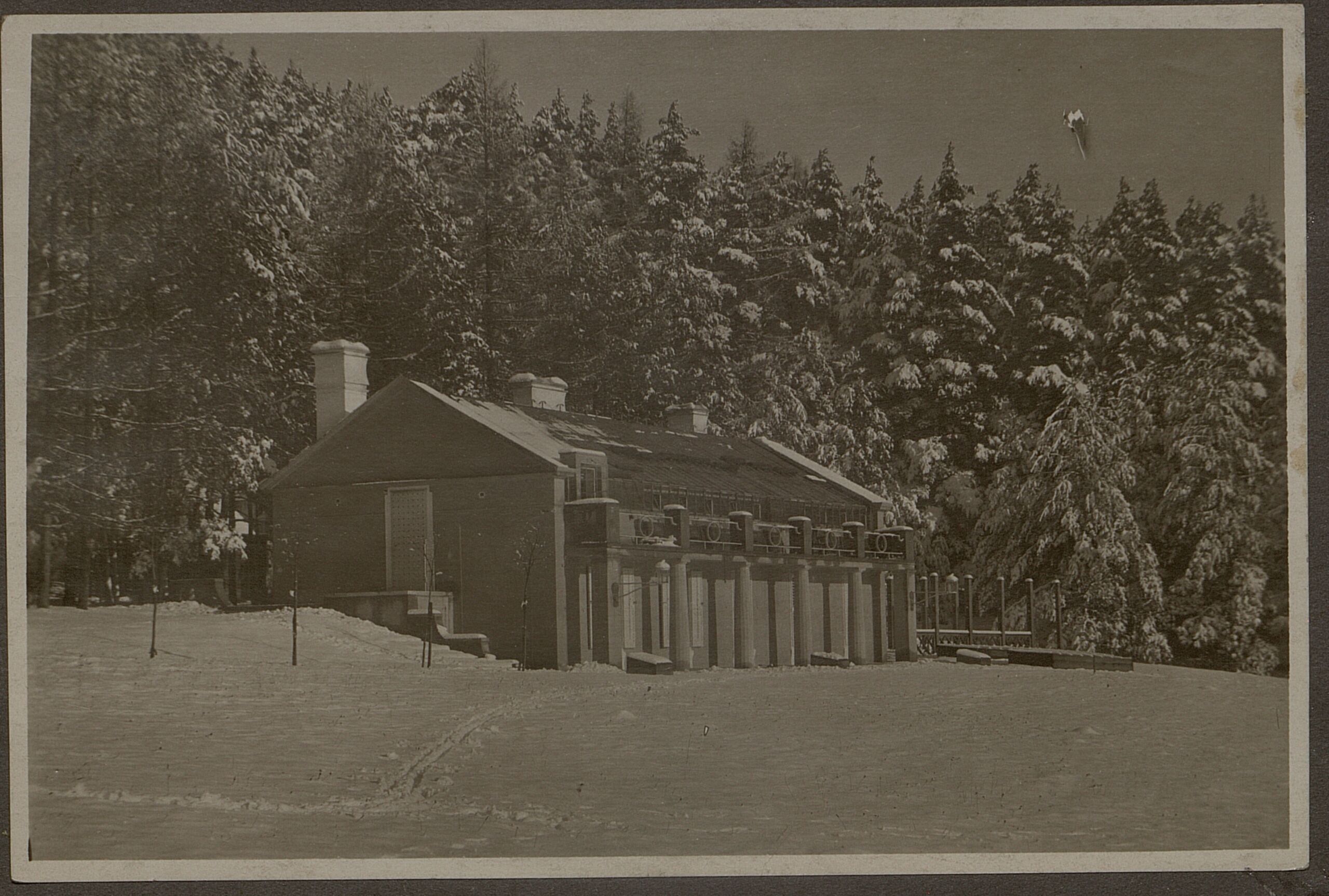 photograph, Outside view of the snow-covered greenhouse at the Kranz villa in Raach near Gloggnitz, Oskar Strnad, MAK Inv.nr. KI 13857-5