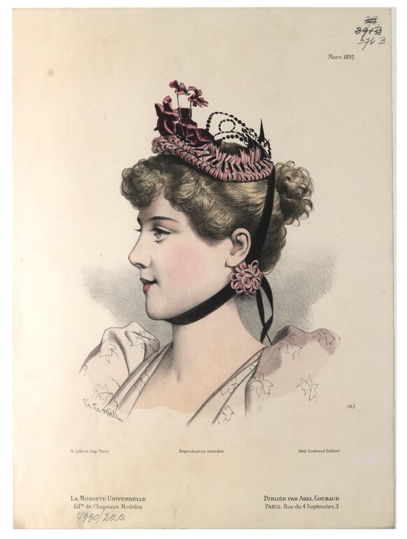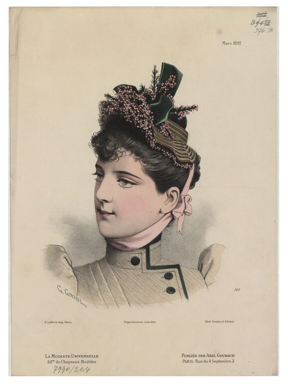 - 作品に記載されている文章: [Links unten:] G. Gonin / Imp. H. Lefèvre, Paris / L'Élégance Parisienne No. 21. 1882. [Rechts unten:] L.N. 345. / Abel Goubaud, Editeur [Gedruckter Text]