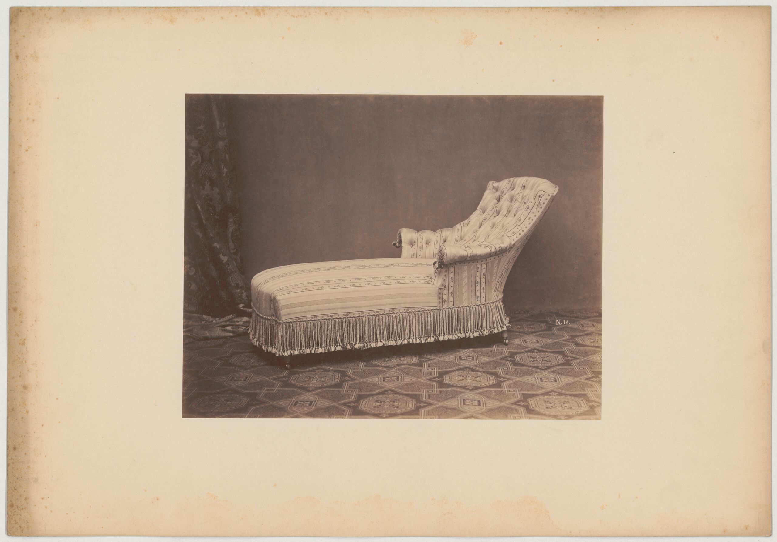 • Fotografie einer Chaiselongue mit fransenbesetzter Bordüre (vom Bearbeiter vergebener Titel)