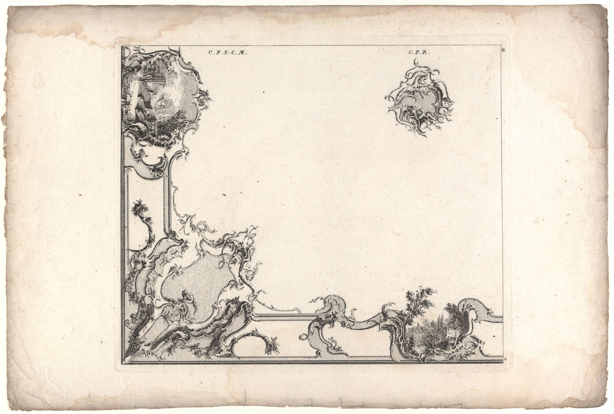 - Plafonddekoration, Blatt 4 aus der Folge R des 17. Buches des Reihenwerkes mit dem Untertitel „Livre de Portion de de Plafonds en Vousures“ (given title)