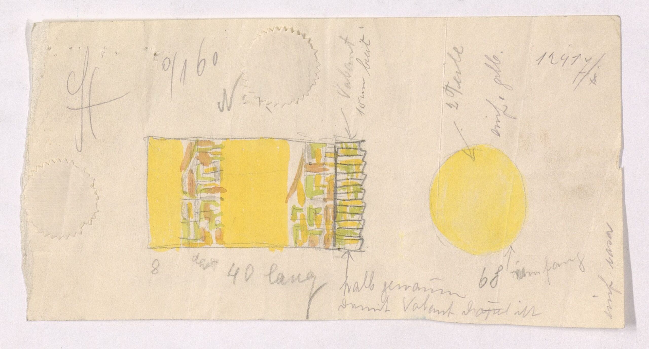 final artwork, Polsterrolle (Kissen), gelb und WW-Stoff (Irland?, Likarz), Wiener Werkstätte, MAK Inv.nr. WWSP 1839