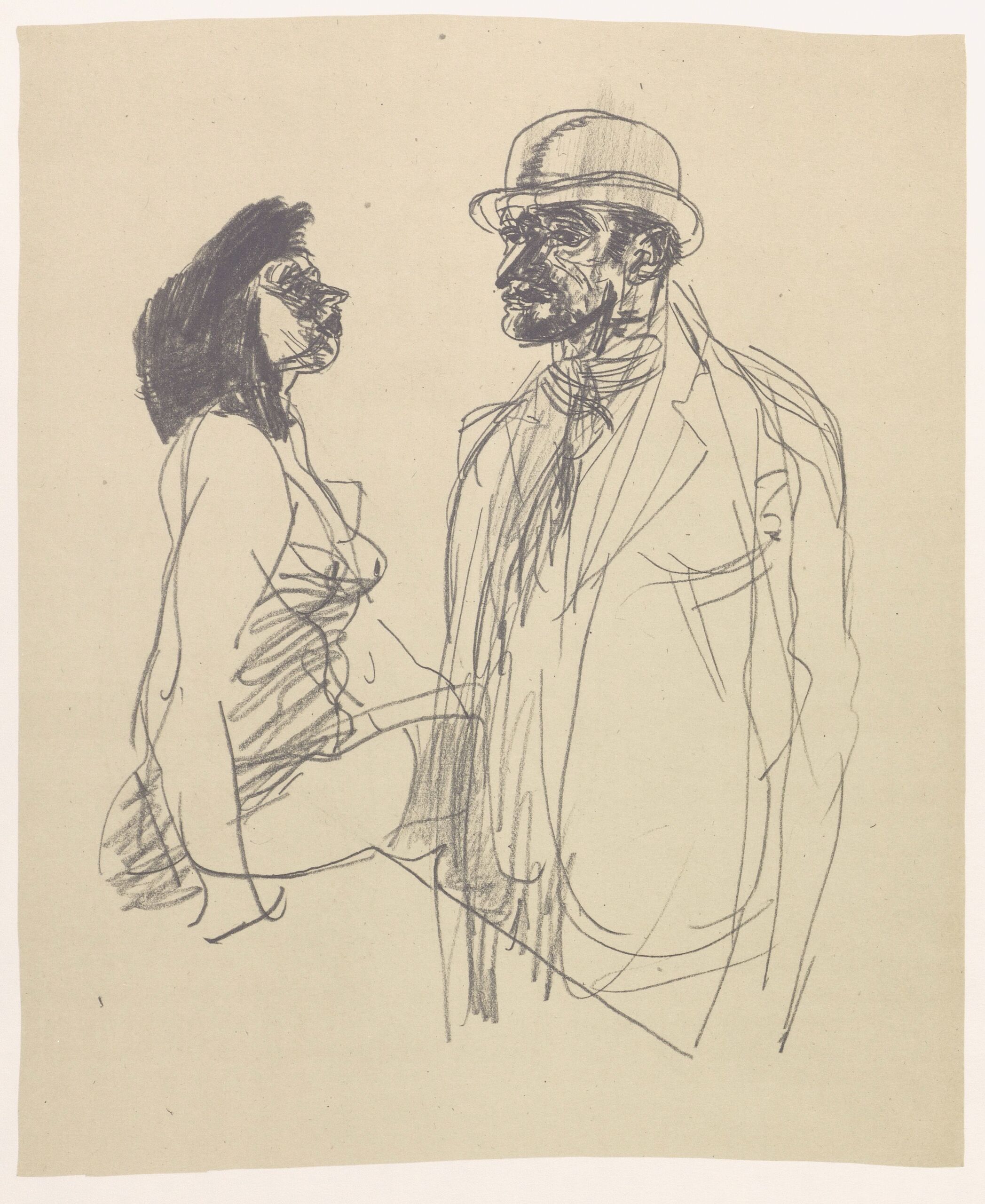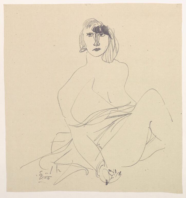 - Portraitstudie eines Mannes und weibliche Aktstudie aus der Mappe "Rudolf Spohn - Fünfzig Zeichnungen"