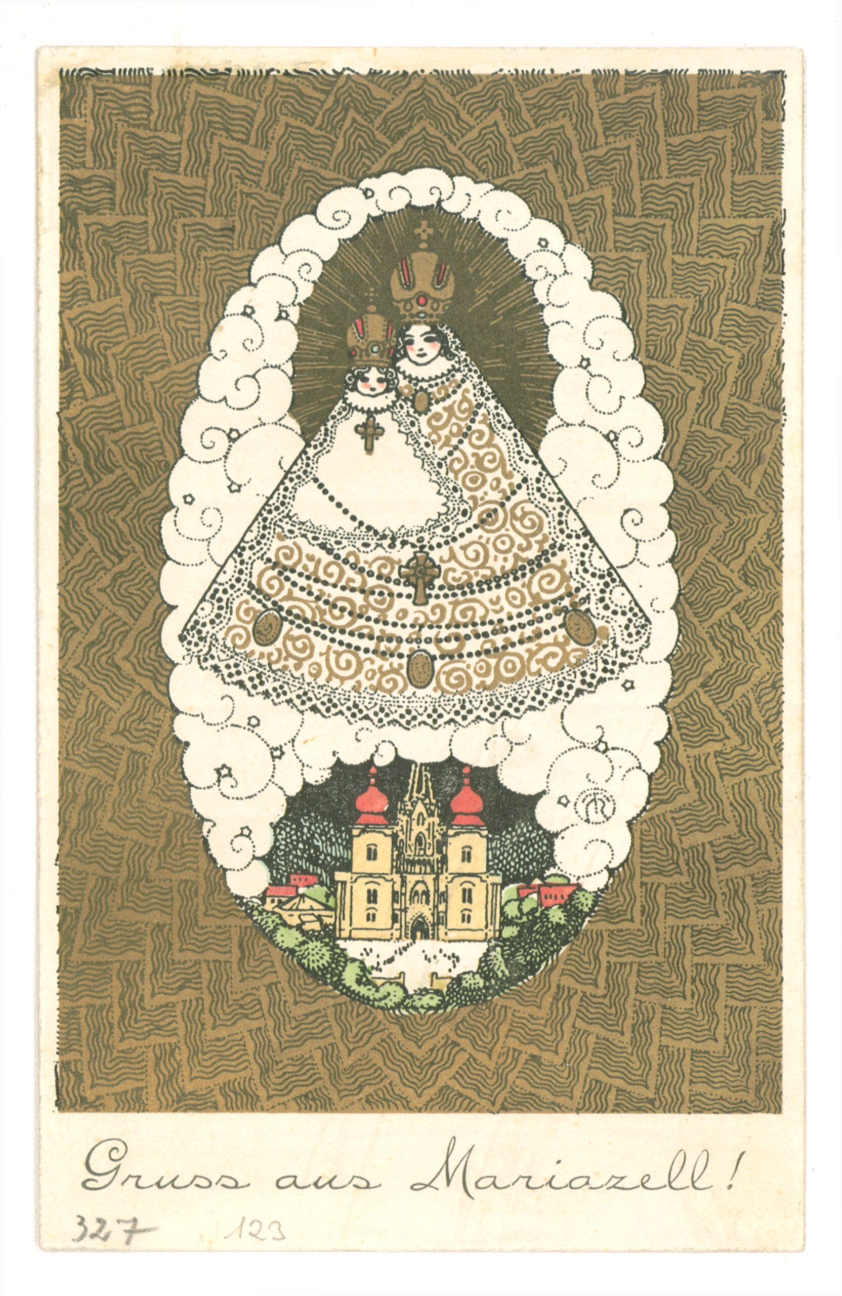 - Maria mit Kind, mit Text „Gruss aus Mariazell !“ (subtitle)