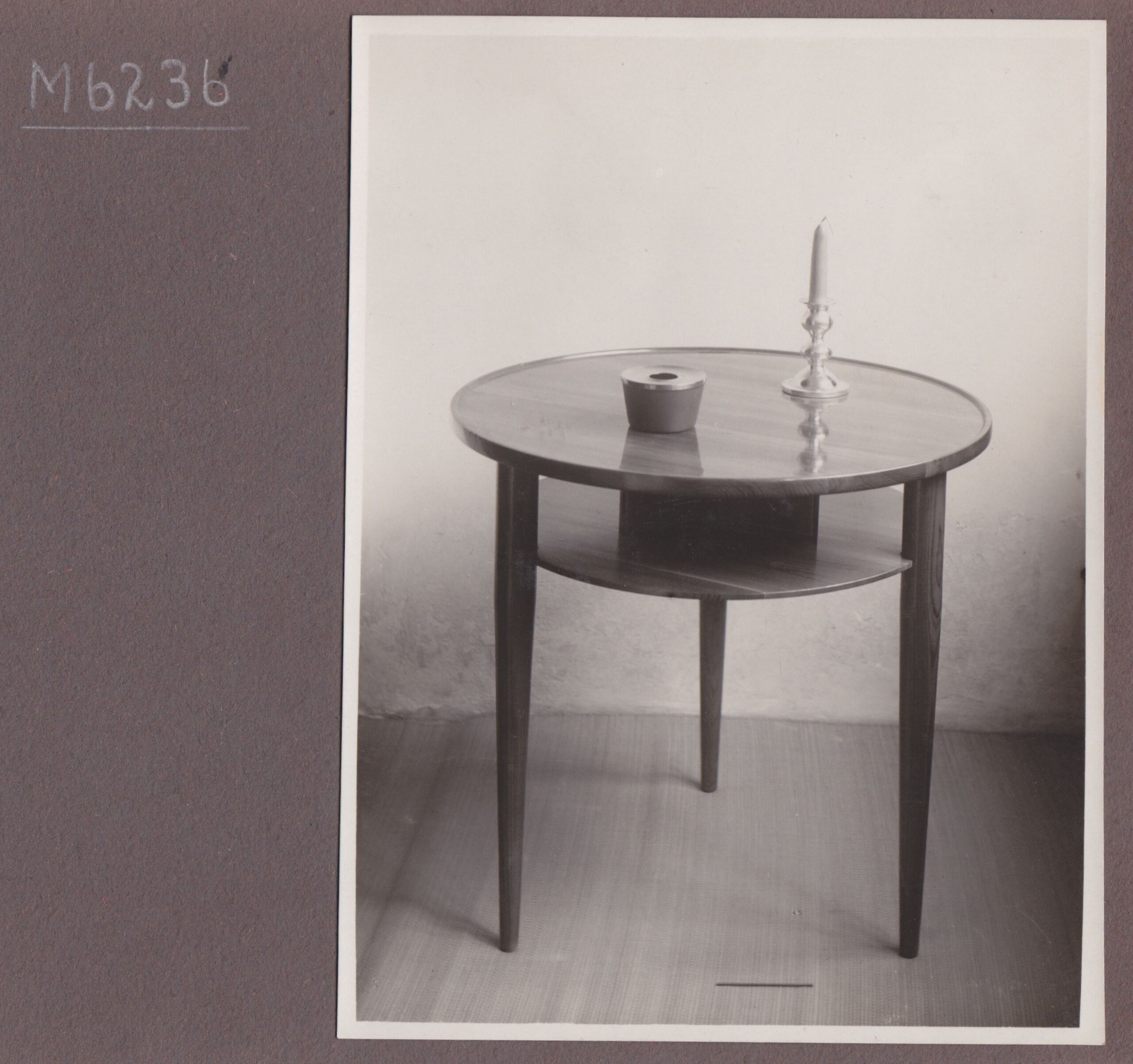 - text: M 6236/Kleines Rauchtischchen rund mit Zwischen-/fach, in Kirsche massiv gedrechselt,/Durchmesser 60 cm, hoch 60 cm