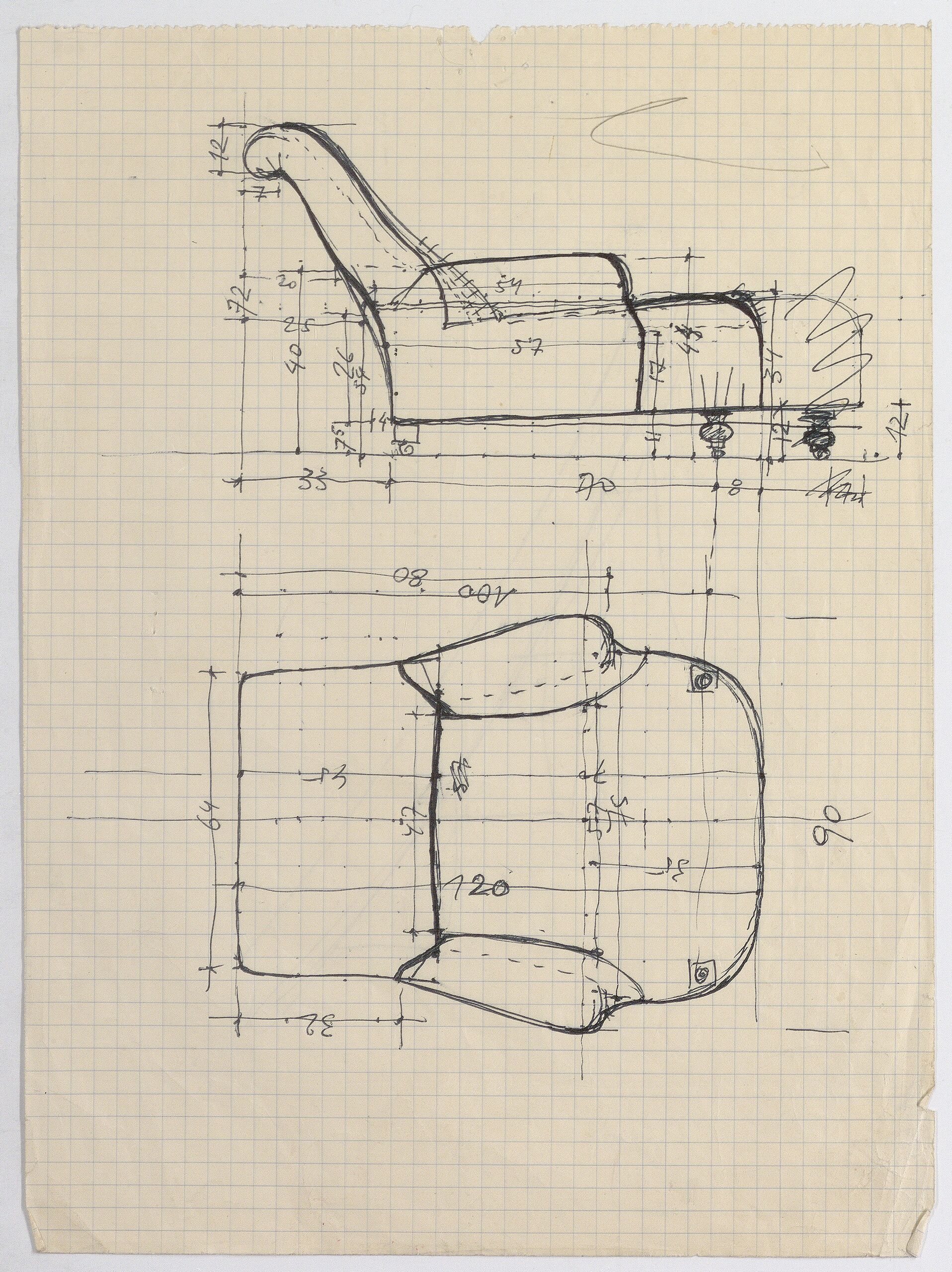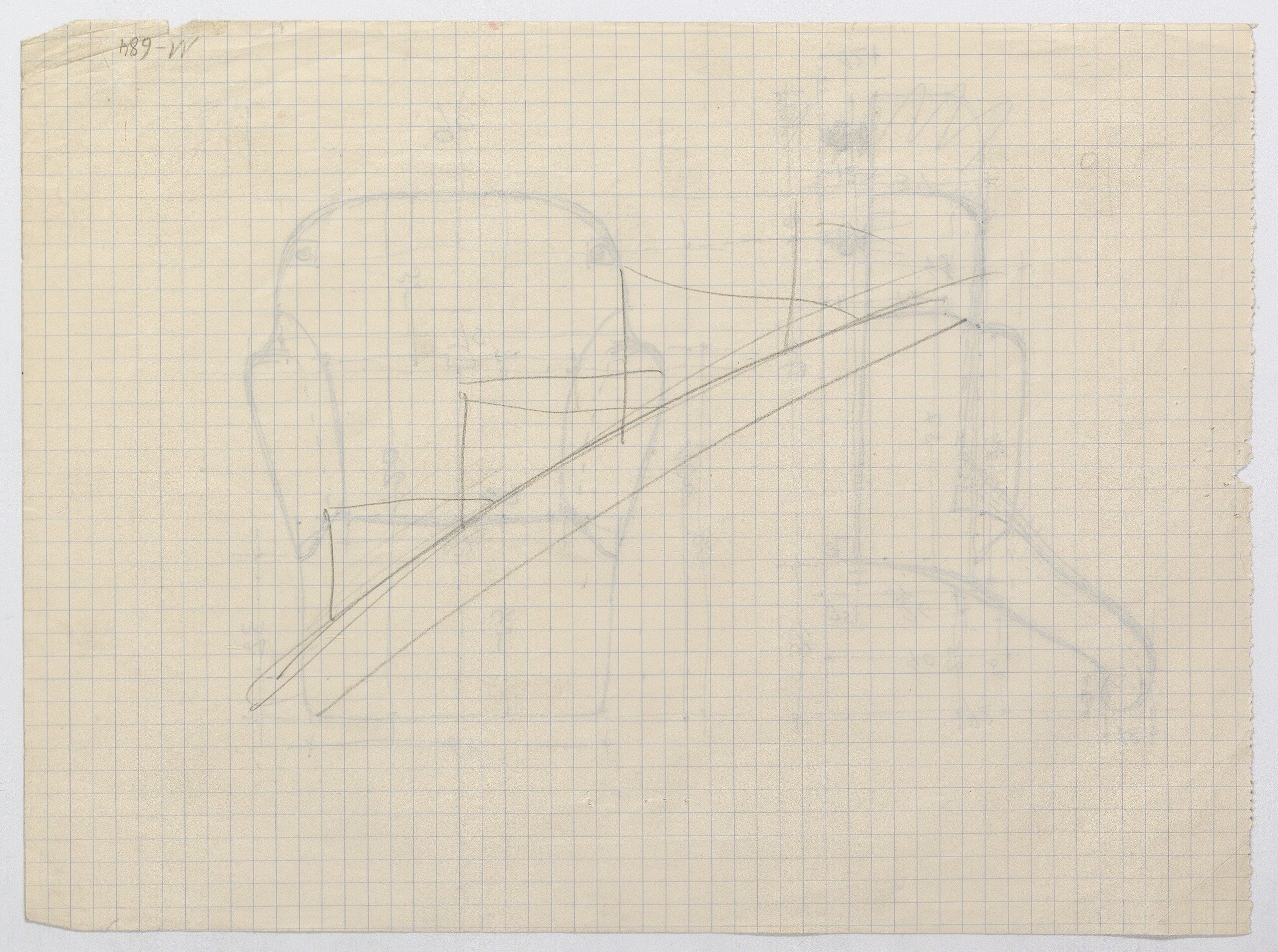 sketch, Recto Seitenansicht und Aufsicht eines Fauteuils, Verso Skizze einer Stiege, Anna-Lülja Praun, MAK Inv.nr. KI 16475-11-593