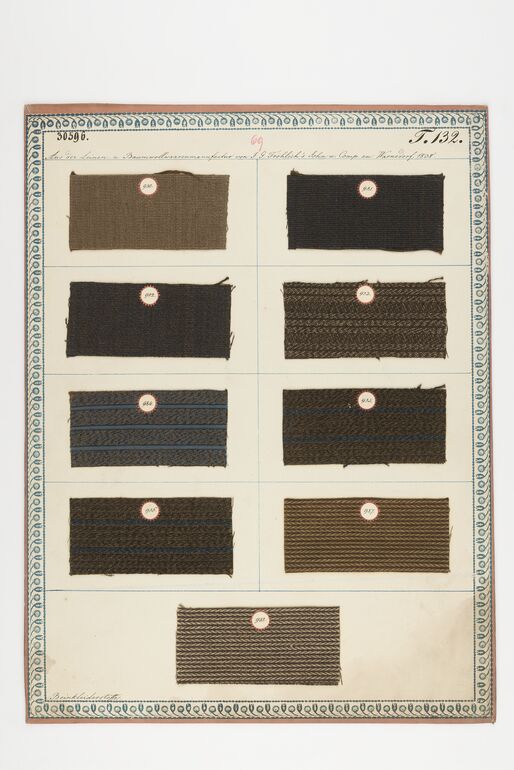 - label (front) : Aus I. G. Fröhlich Sohn's Manufactur zu Warensdorf in Böhmen. / Aus der allgem. Gewerbsprod.-Ausstellung in Wien, 1835. / Roher Leinen-Drill, 7/8 br. Aus böhmischem Garn. / Gebleichter Leinen-Drill, 7/8 br. Aus böhmischem Garn. / Roher Leinen-Drill aus englischem Machinengarn.