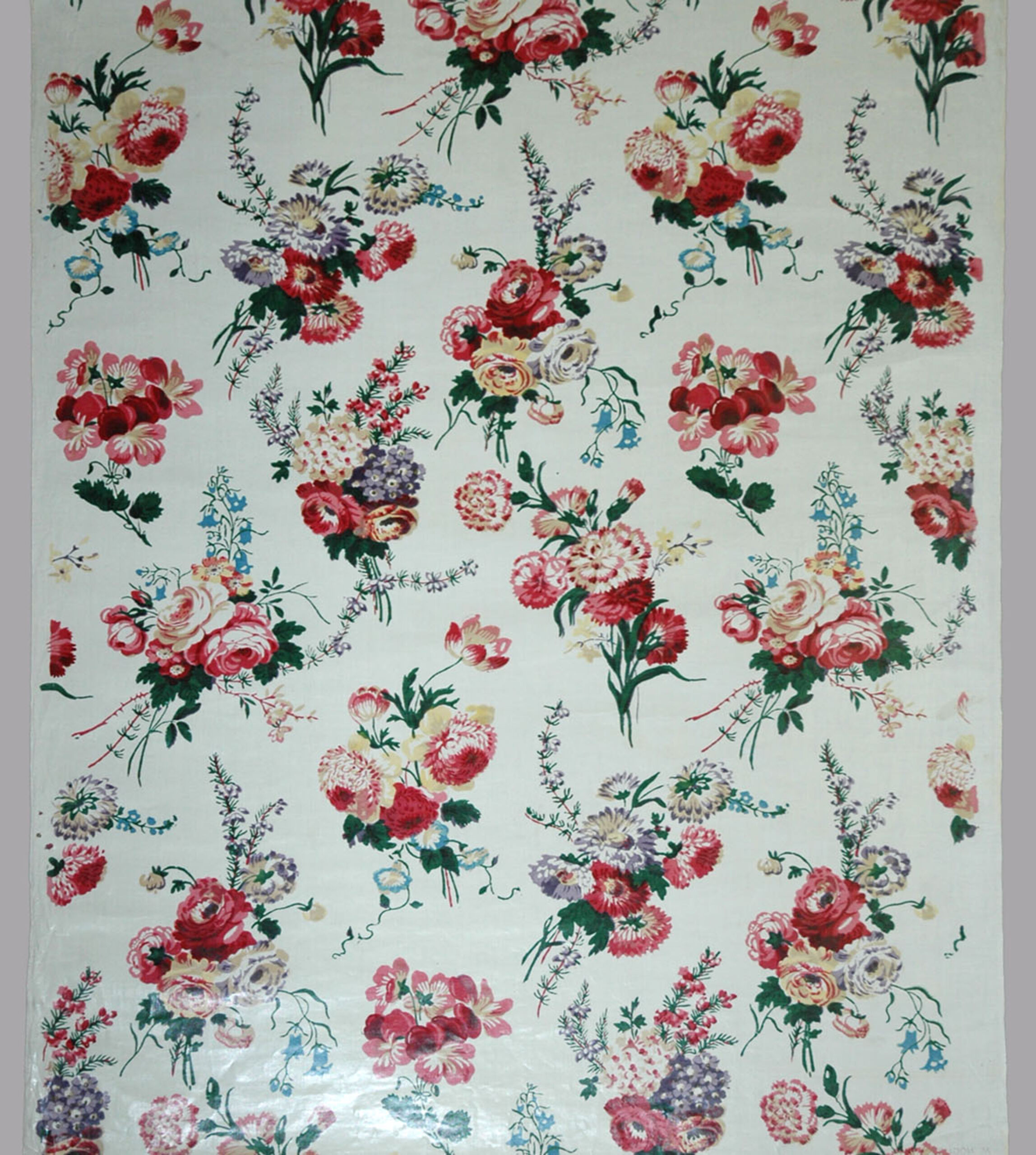 decorative fabric, Scattered multicoloured bunches of flowers on off- white background, Green & Abbott, MAK Inv.nr. T 5846