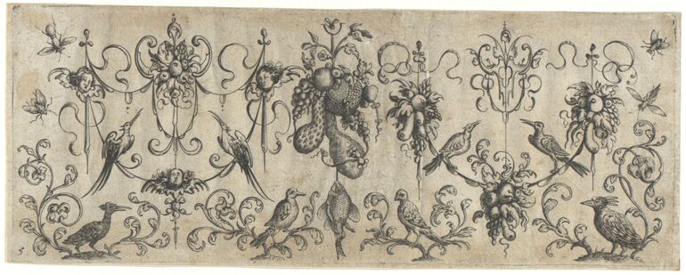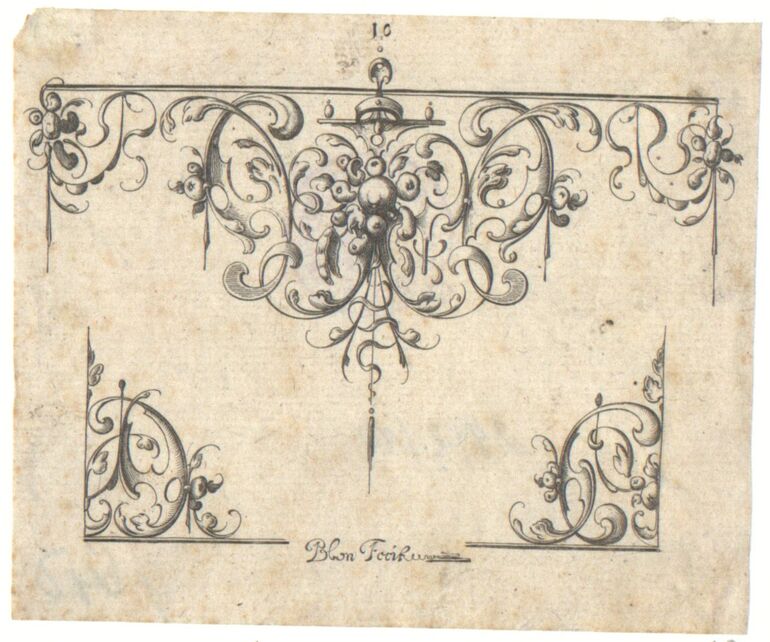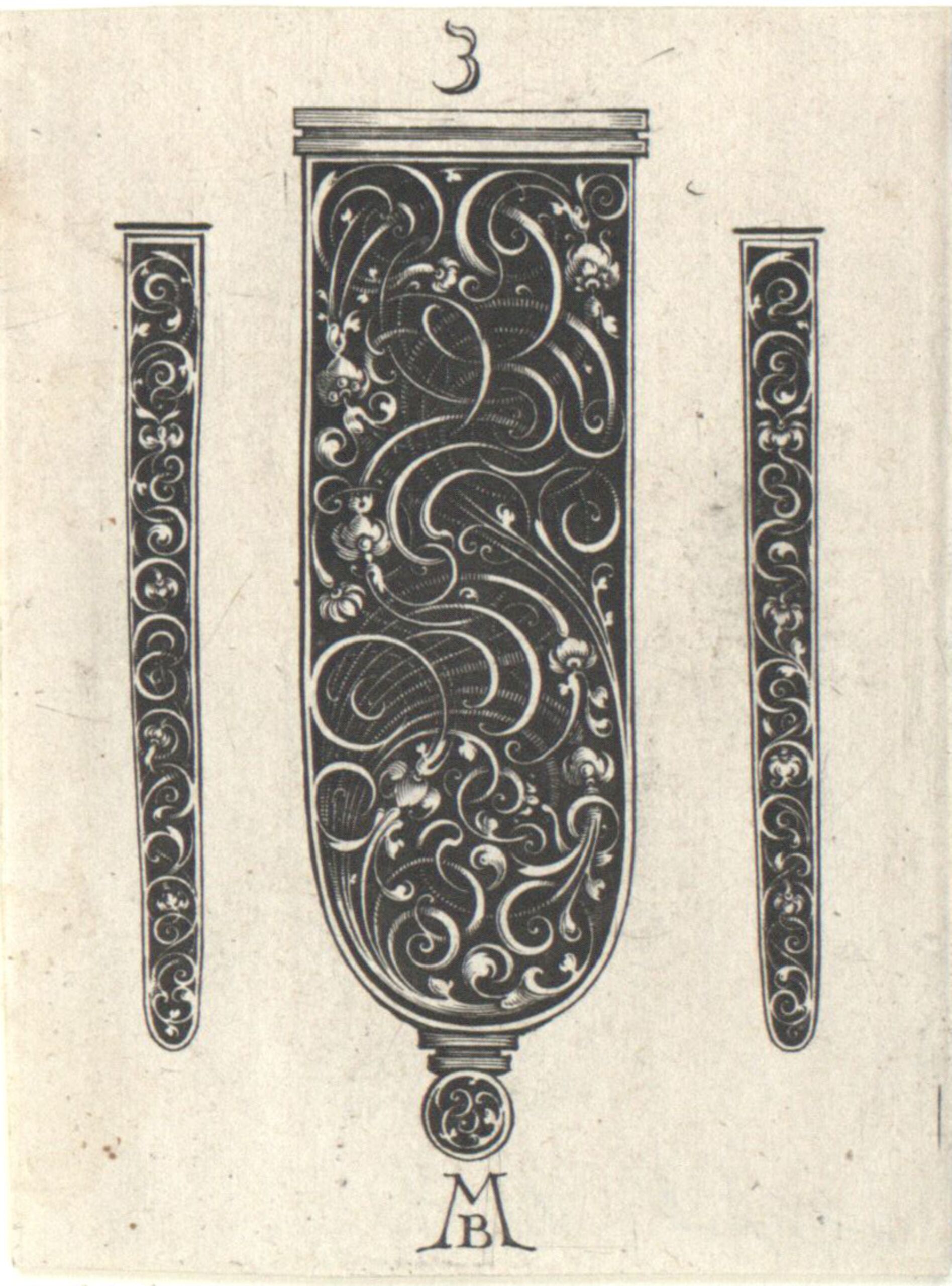 ornamental engraving, Scheiden, Blatt 3 aus der Folge H von Degenteilen, herausgegeben von M. Le Blon, erster Zustand, Michel Le Blon, MAK Inv.nr. KI 2257-9