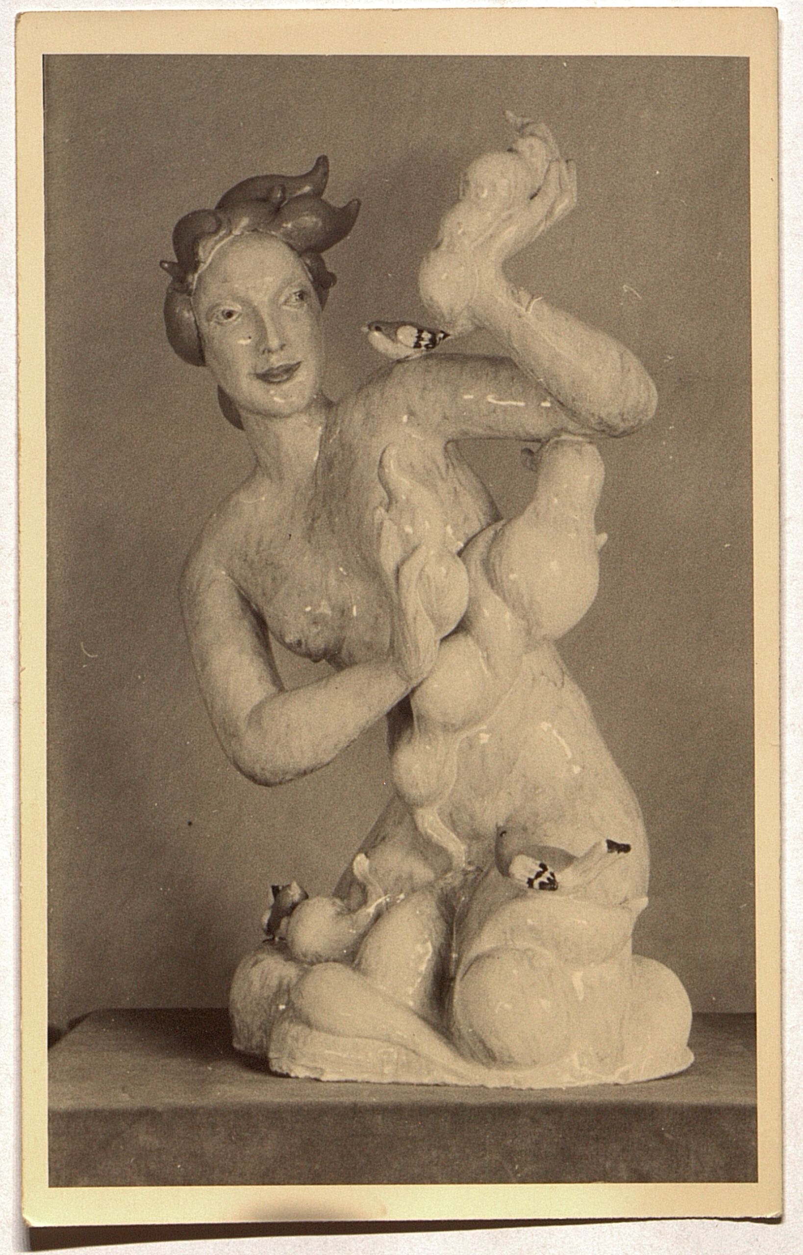 postcard, Schwarz-Weiß Abbildung einer Keramik: allegorische Figur "Luft" [?], Anonym, MAK Inv.nr. NLDK 98