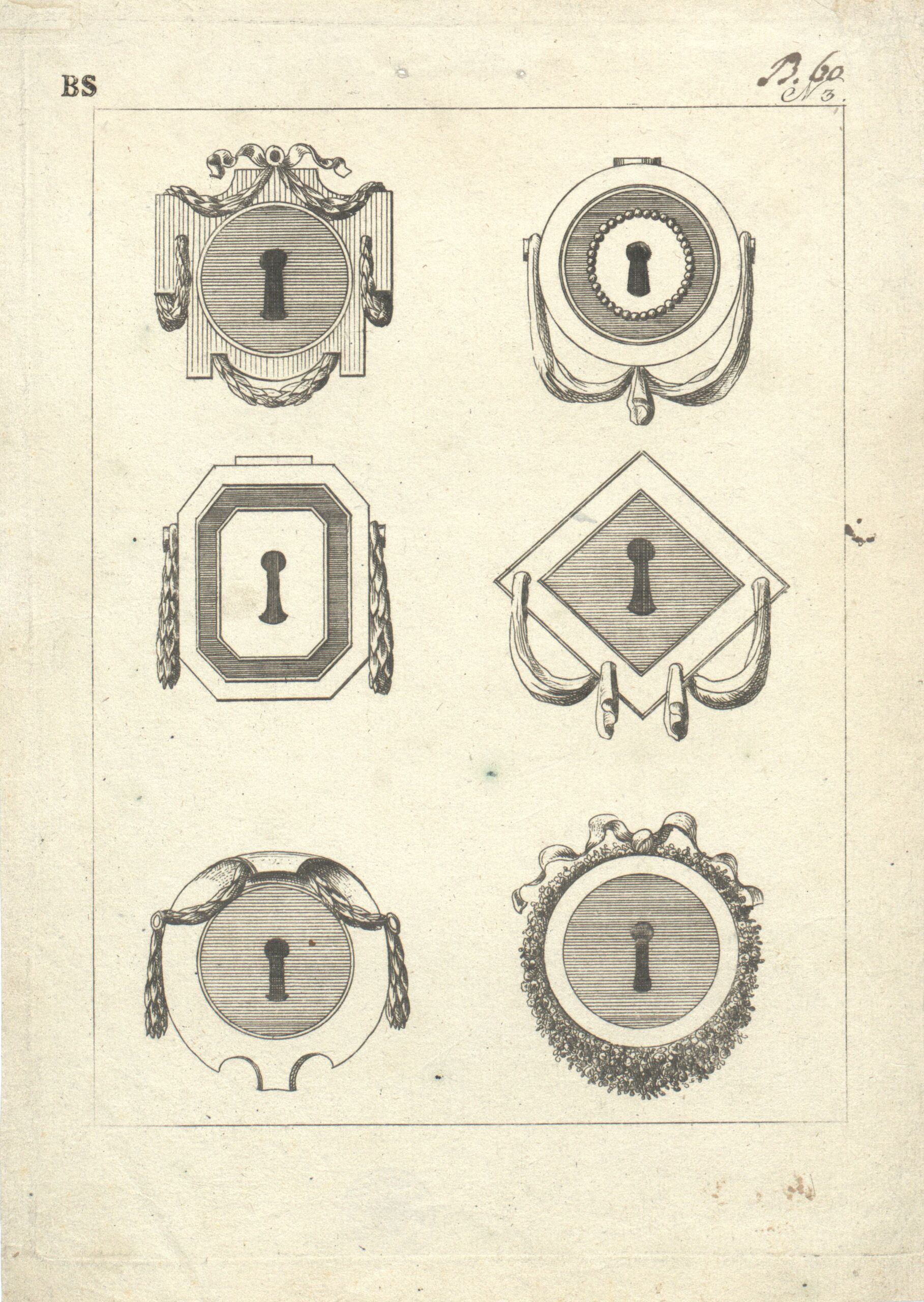 - Sechs Türbeschläge, Blatt 3 aus einer Folge von Schlosserarbeiten, herausgegeben von Fietta et Comp. (given title)