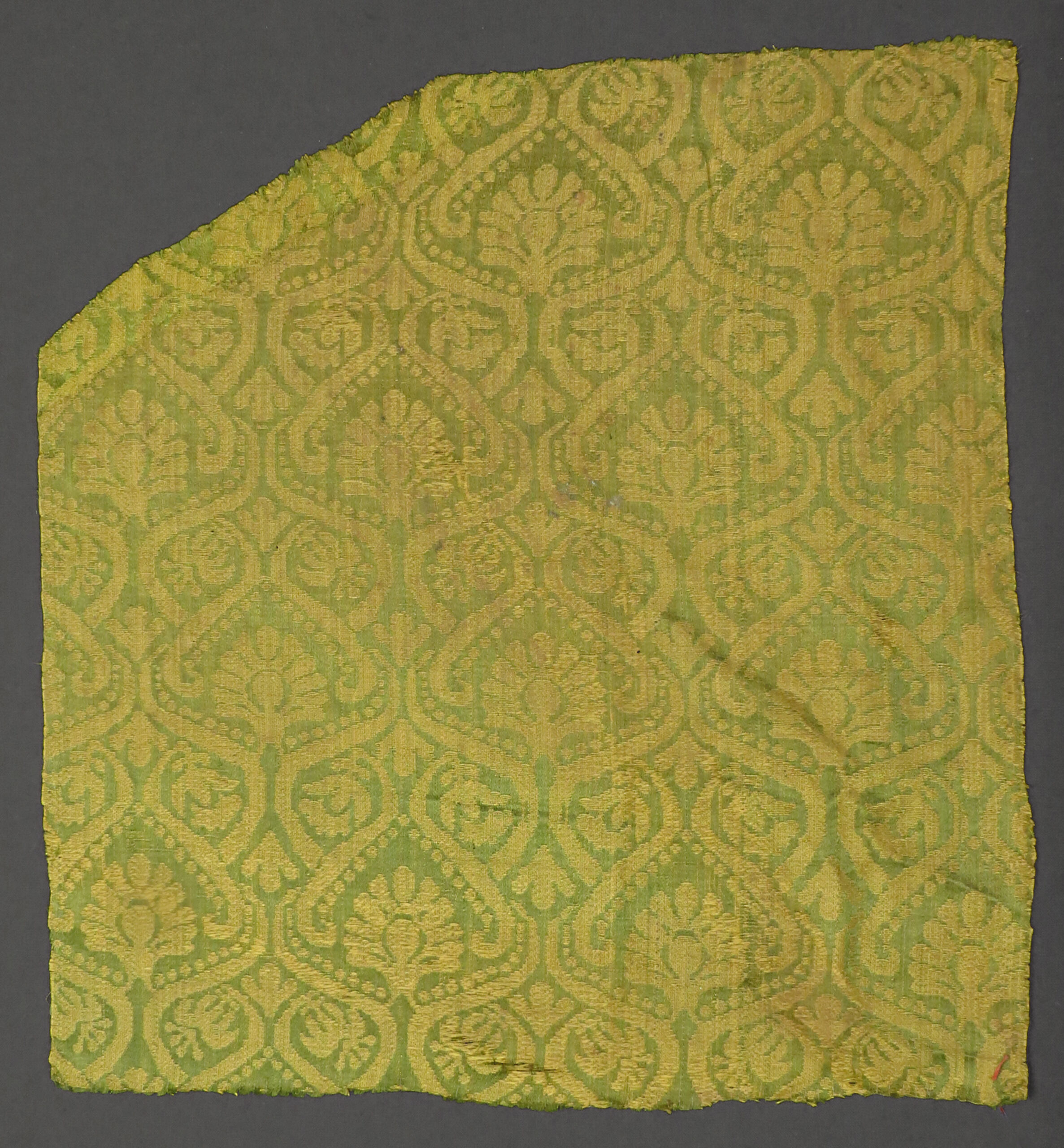 - Seidendamast mit Palmentten-Motiv (descriptive title)