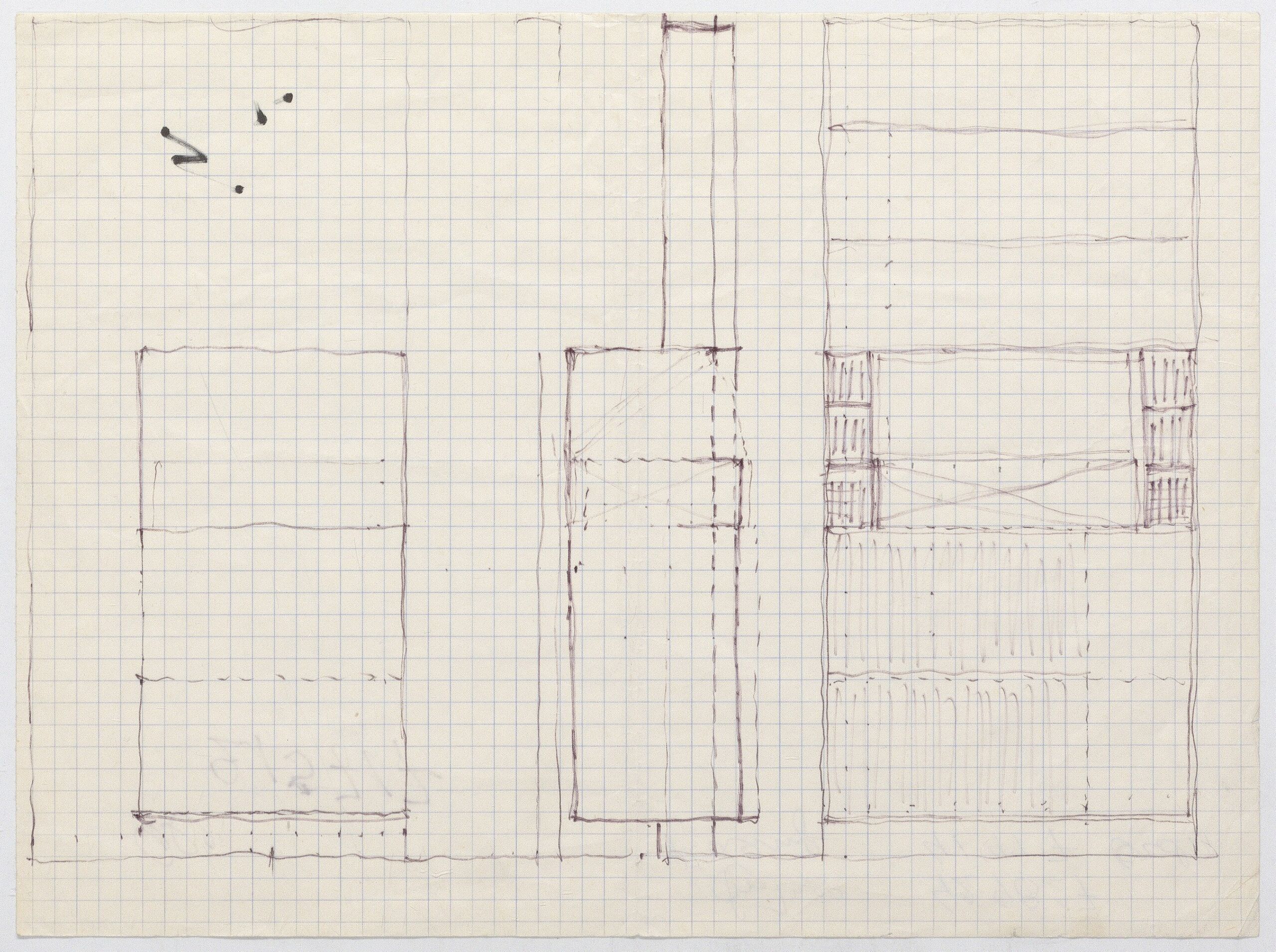 sketch, Seiten- und Frontalansicht von einem Einbauregal für eine vorhandene Türöffnung, Anna-Lülja Praun, MAK Inv.nr. KI 16475-5-20