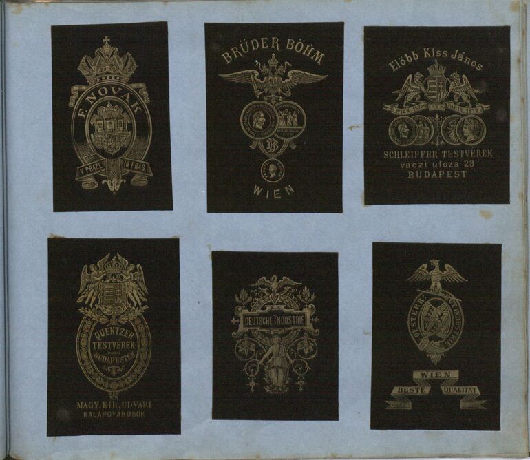 - aus einem Musterbuch mit einer Sammlung von Stempeln und Markenzeichen diverser Firmen, Institutionen und Privatpersonen des Graveuers Ferdinand Ahacic