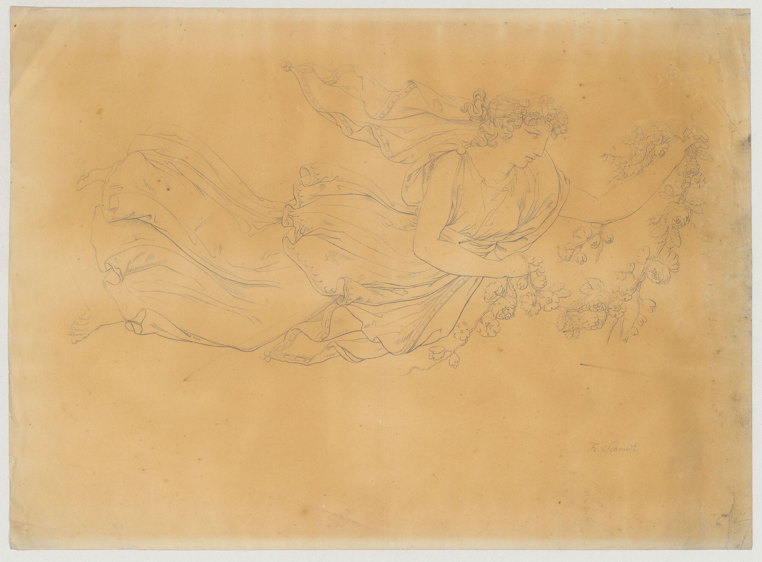 study, Studie der fliegenden Personifikation des Frühlings, Karl Schmidt, MAK Inv.nr. KI 23713-4