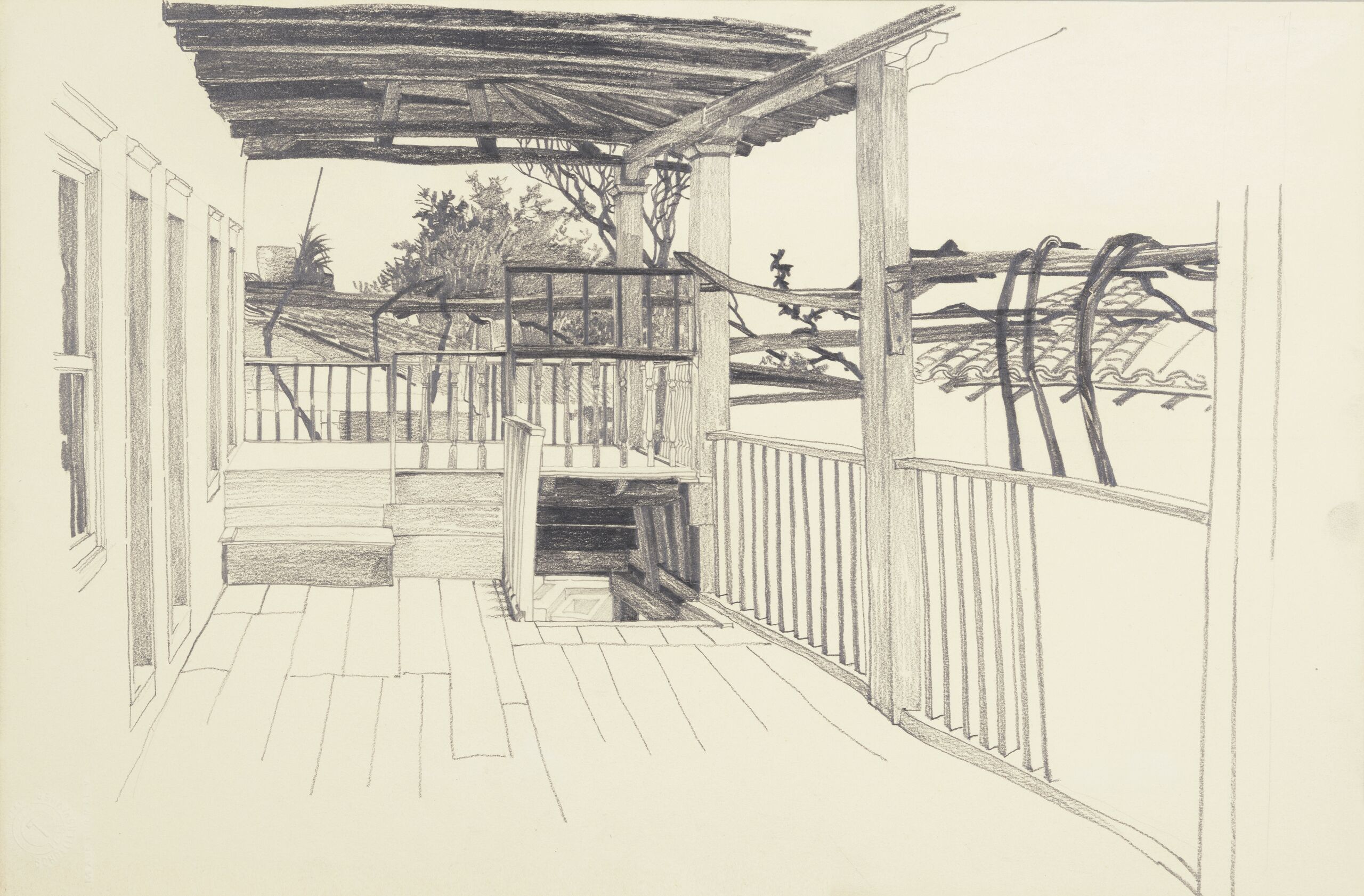 travel sketch, Studie einer Terrasse, Leopold Forstner, MAK Inv.nr. KI 8120-21