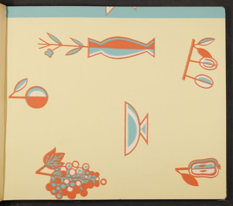 This book of wallpaper patterns by the Wiener Werkstätte, dated 1929, contains well-known designs by Mathilde Flögl and conveys a good impression of everyday sales work: pattern books like this one made it easier for customers to make a choice from the great variety on offer. Many patterns were used both for wallpaper and for fabrics. Wallpaper was used by the Wiener