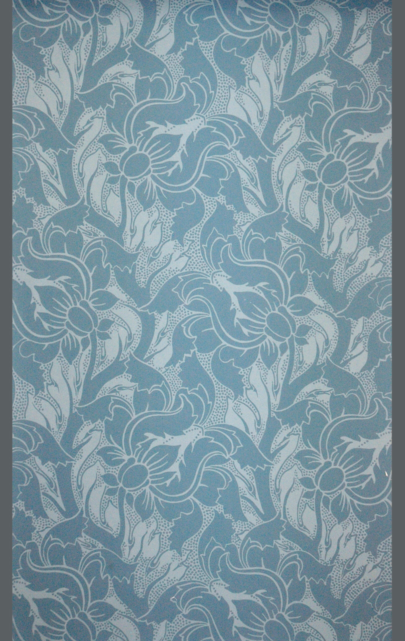wallpaper sample, Teal coloured tendrils with large surrealistic flowers and pale leaves, on dotted background, Alexander & Co. Rottmann, MAK Inv.nr. T 13527-58