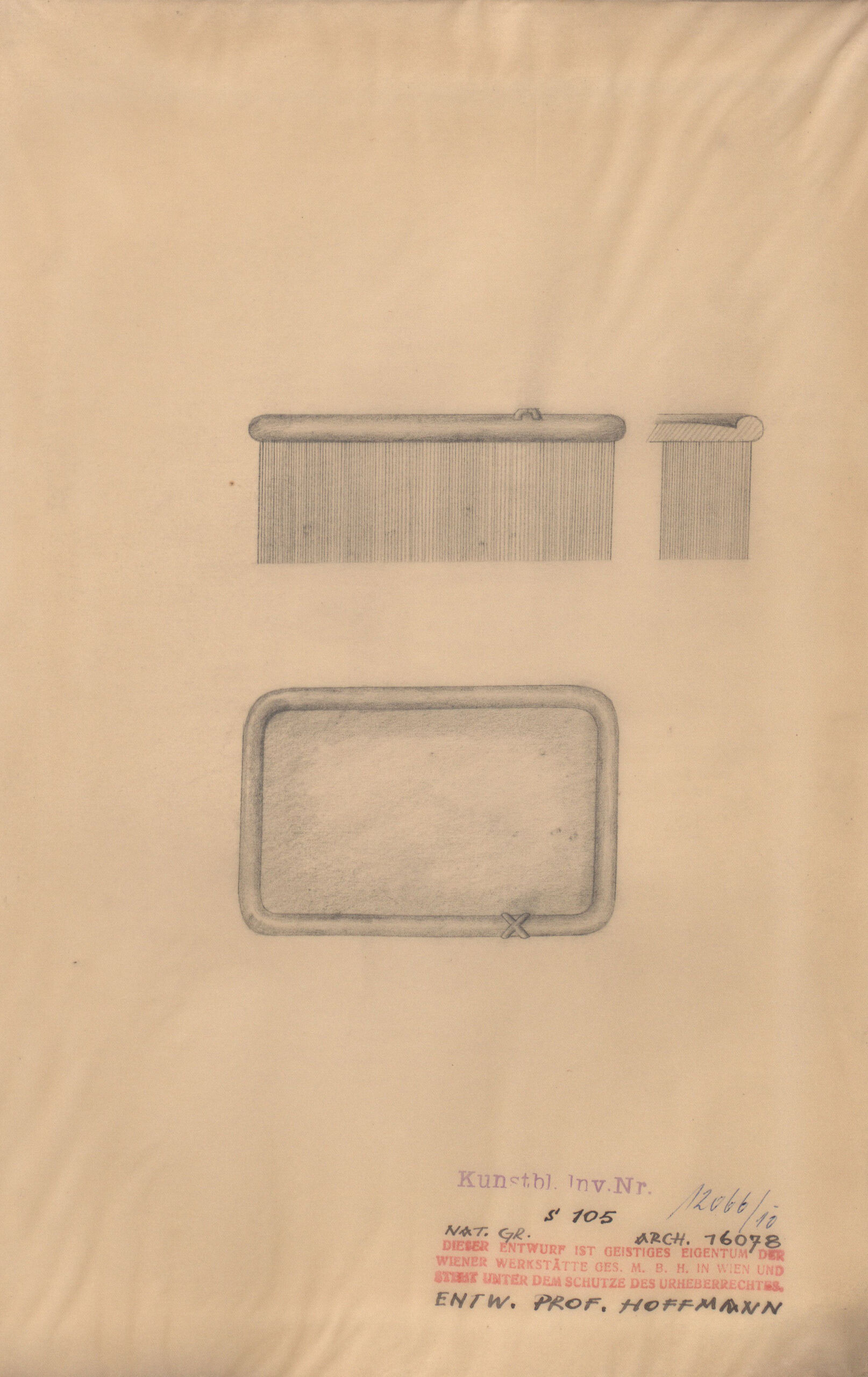 - 作品に記載されている文章: Dieser Entwurf ist geistiges Eigentum der Wiener Werkstätte Ges.m.b.H. in Wien und steht unter dem Schutze des Urheberrechtes
