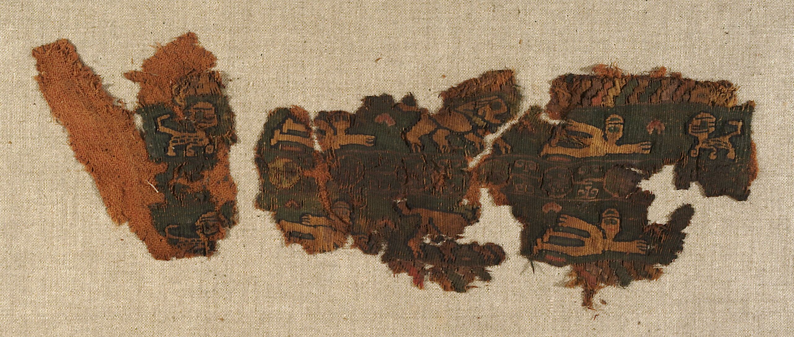 - Two fragments with double band; genii, lions and panthers (descriptive title)